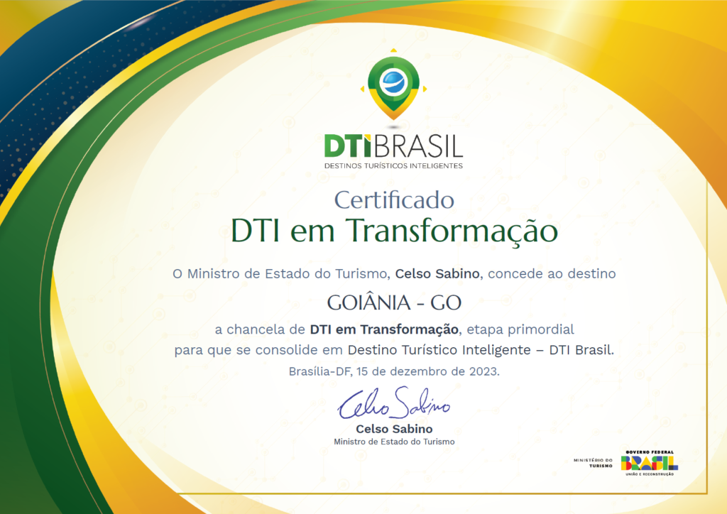 Goiânia está inserida na Estratégia Nacional DTI Brasil, iniciativa do Ministério do Turismo que adapta a metodologia desenvolvida pela SEGITTUR, na Espanha, para promover a transformação dos destinos turísticos no país. Atualmente, o município já possui certificação de Destino Turístico Inteligente (DTI) em Transformação e continua avançando nas etapas de diagnóstico e planejamento. Com foco na inovação e na sustentabilidade, Goiânia vem implementando ações estratégicas para integrar tecnologia à gestão do território e à experiência dos visitantes, consolidando-se como um destino moderno e inteligente.
