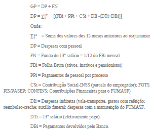 III - os gastos com pessoal são calculados de acordo com a fórmula, sendo todos os valores numéricos nominais: (Redação da Lei nº 7.215, de 13 de julho de 1993.)