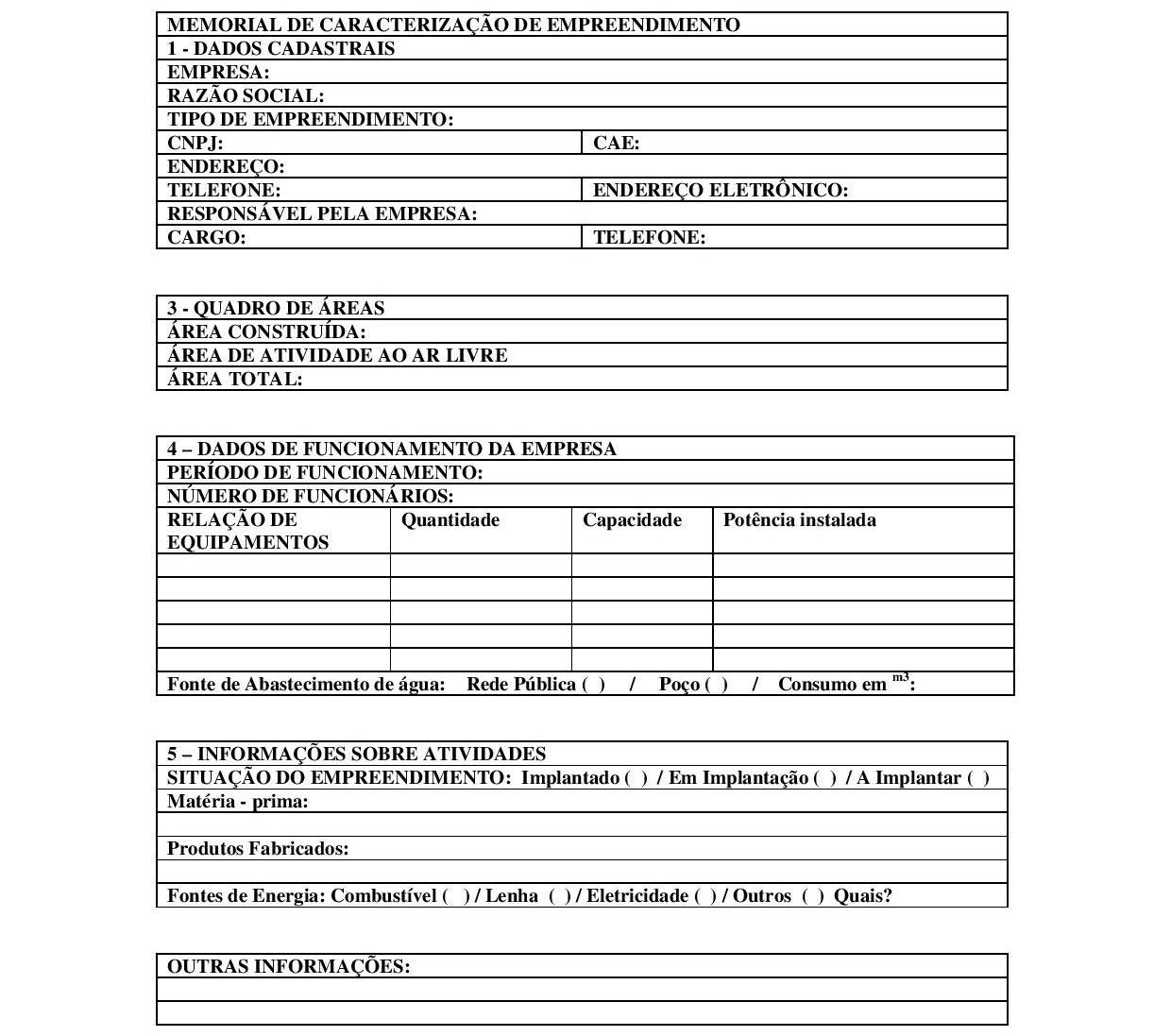 Art. 6º O Memorial de Caracterização do Empreendimento poderá ser preenchido pelo proprietário ou responsável legal pela atividade. Não há necessidade de Anotação de Responsabilidade Técnica deste documento, salvo os casos previstos no artigo 2º, parágrafo único desta Instrução Normativa. (Redação da Instrução Normativa nº 014, de 26 de setembro de 2006.)