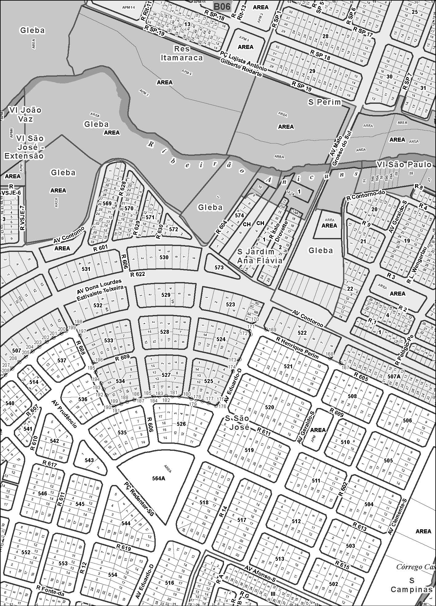Inicia-se no vértice denominado M1(N=8.151,831,615;E=677.140,913), na margem direita do Córrego Santa Rita com Fazenda Santa Rita Parte, daí segue com azimute e distância de 93° 22’41”- 496,42m, até o vértice M2(N=8.151.802,365;E=677.636,473), confrontando com Residencial Granville, daí segue com azimute e distância de 172°36’56” - 611,38m, até o vértice M3(N=8.151.196,053;E=677.715,053), confrontando ainda com o Residencial Granville, daí segue com azimute e distância de 187°20’18” - 118,38m”, até o vértice M4(N=8.151.078,643;E=677.699,932), confrontando com Fazenda Santa Rita Parte, daí segue com azimute e distância de 323°06’20” - 586,99m, até o vértice M5(N=8.151.548,081;E=677.347,539), confrontando com Fazenda Santa Rita Parte, daí segue com azimute e distância de 303°47’49” - 259,77m, até o vértice M6(N=8.151.692,579;E=677.131,665), cravado na margem direita do Córrego Santa Rita, daí segue margeando este córrego a jusante e em linha reta com azimute e distância de 3°48’20” - 139,34m, até o início desta descrição, no vértice M1. (Incluído pela Lei Complementar nº 371, de 2024.)