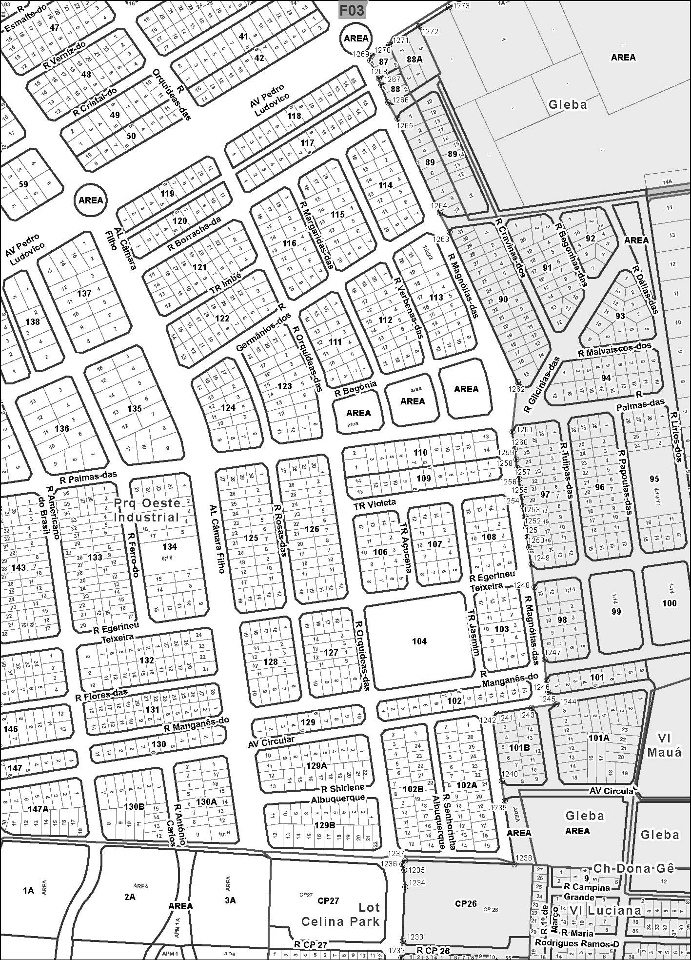 8 - Área Pública Municipal – APM- Q-CP26, desafetada pela Lei nº 7.358, de 15/09/94, com 17.620,31m² (dezessete mil, seiscentos e vinte vírgula trinta e um metros quadrados), situada entre a Avenida Circular, Rua CP-26 e Rua das Orquídeas, no loteamento Celina Park;