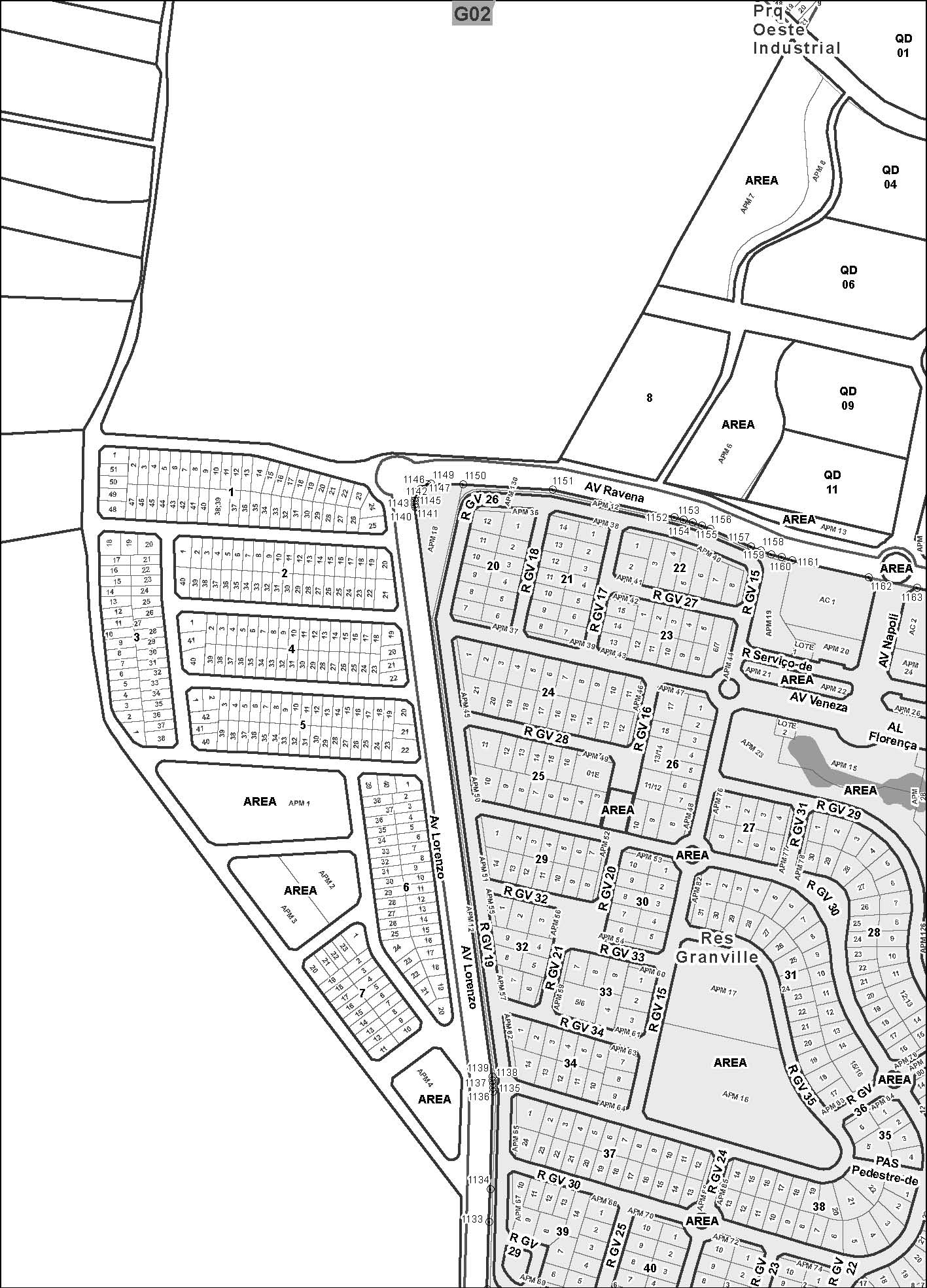 3 - Área Pública Municipal – APM 04, destinada a Praça/Parque Infantil, com 5.422,50m² (cinco mil quatrocentos e vinte e dois vírgula cinquenta metros quadrados), situada entre as Ruas: JGO 3, JGO 4, JGO 5 e RC-5, no Setor Jardim Gramado;