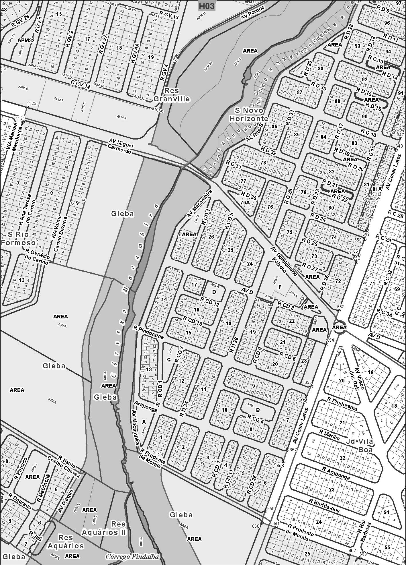 10 - Área Pública Municipal – APM- 02, com 754,99m² (setecentos e cinquenta e quatro vírgula noventa e nove metros quadrados), destinada a Centro Comunitário, situada na Rua Cabo Frio, no loteamento Residencial Jardim Leblon;