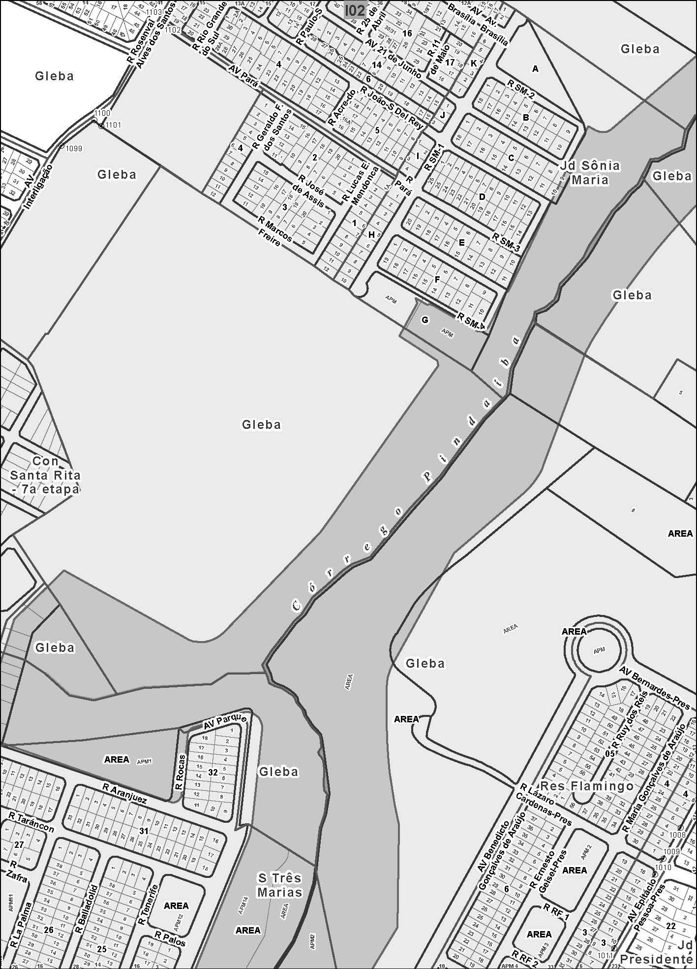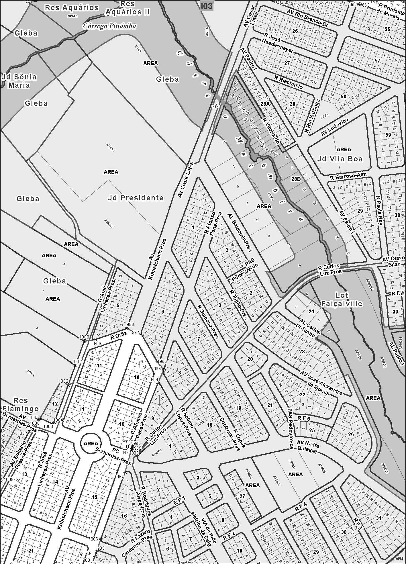 § 1º Considera-se as faixas bilaterais contíguas aos cursos d’água com largura mínima de 30,00m (trinta metros), o limite para a identificação da APP em áreas consolidadas ao longo do Córrego Macambira e do Ribeirão Anicuns, para os lotes inseridos no limite do Parque Linear Macambira Anicuns, desde que tais dimensões propiciem a preservação de suas planícies de inundação ou várzeas, prevalecendo o disposto na alínea “a”, do art. 106, da LC 171/2007 para as áreas e glebas e entendido que os limites das faixas de inundação constituem a própria APP, em conformidade com a Lei Federal nº4.771, de 15/09/65, Código Florestal Brasileiro e art. 2º, da Resolução CONAMA nº 303, de 20/03/2002.
