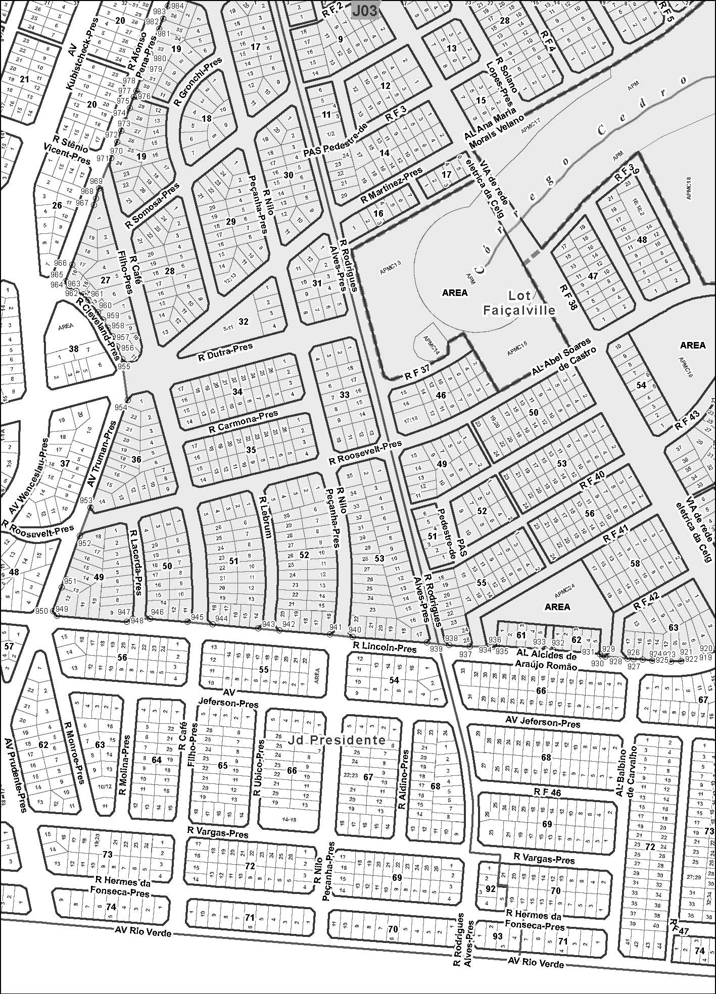 2 - Área Pública Municipal – Parte da área, destinada a Mercado, com 2.497,99m² (dois mil, quatrocentos e noventa e sete vírgula noventa e nove metros quadrados), denominada por Praça Jorge Carneiro, situada na confluência da Rua Langendoerffer com Rua Heitor Fleury, no loteamento Cidade Jardim;
