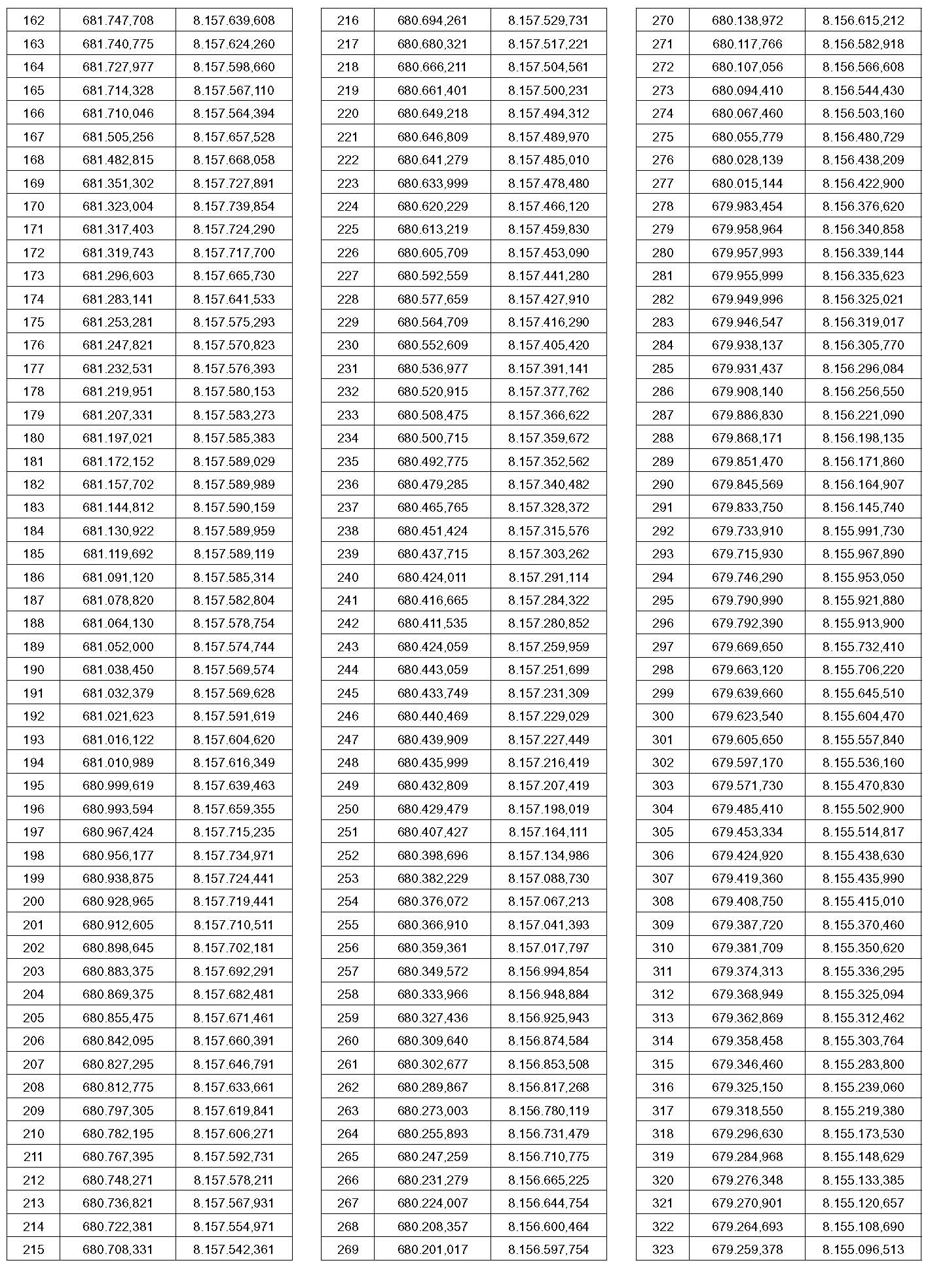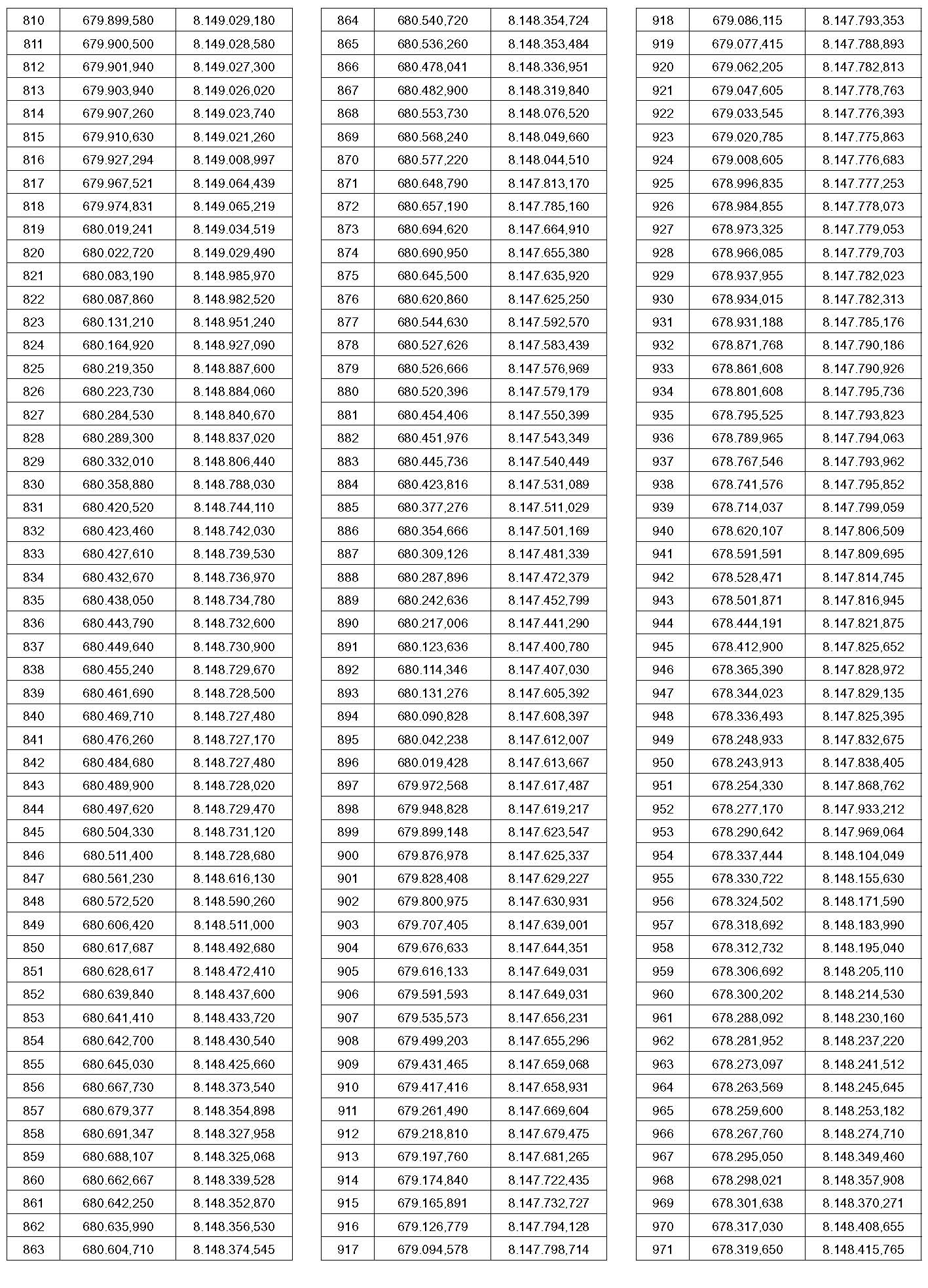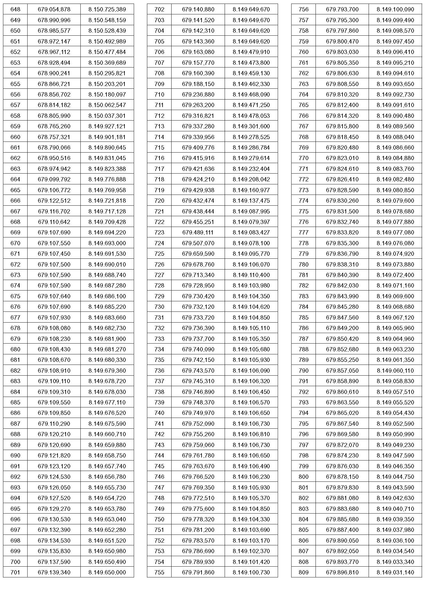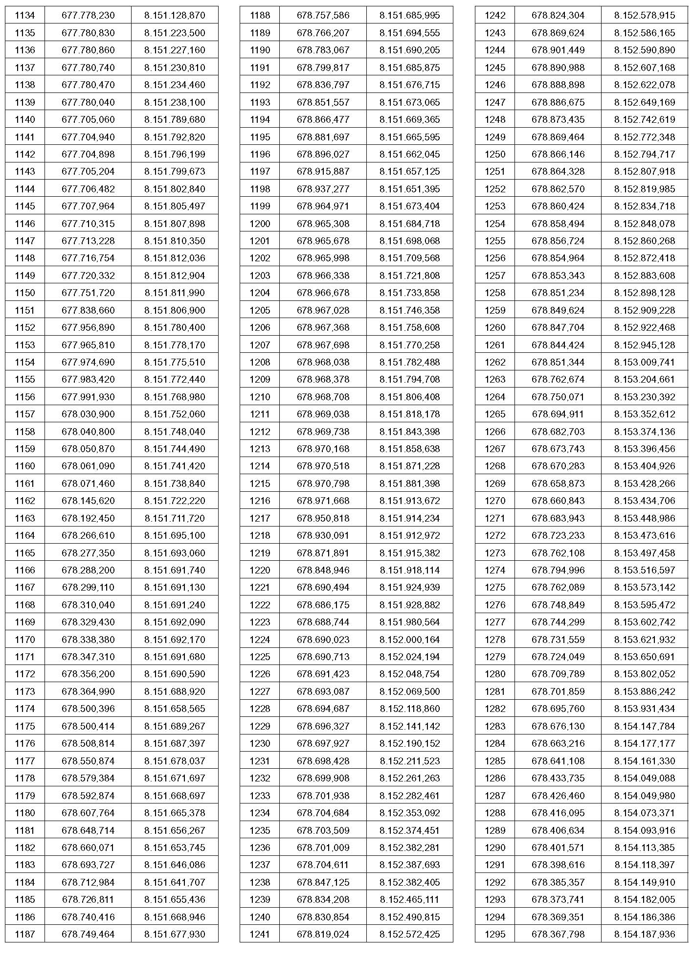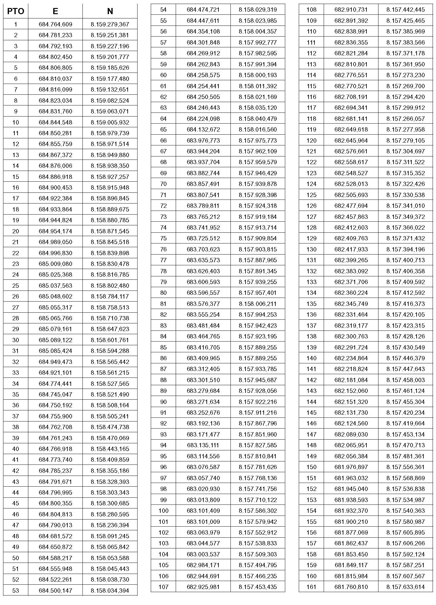 PTO – Identificação do ponto a que se referem às coordenadas contidas nesta tabela. O ponto pode ser visualizado no mapa que faz parte deste anexo.