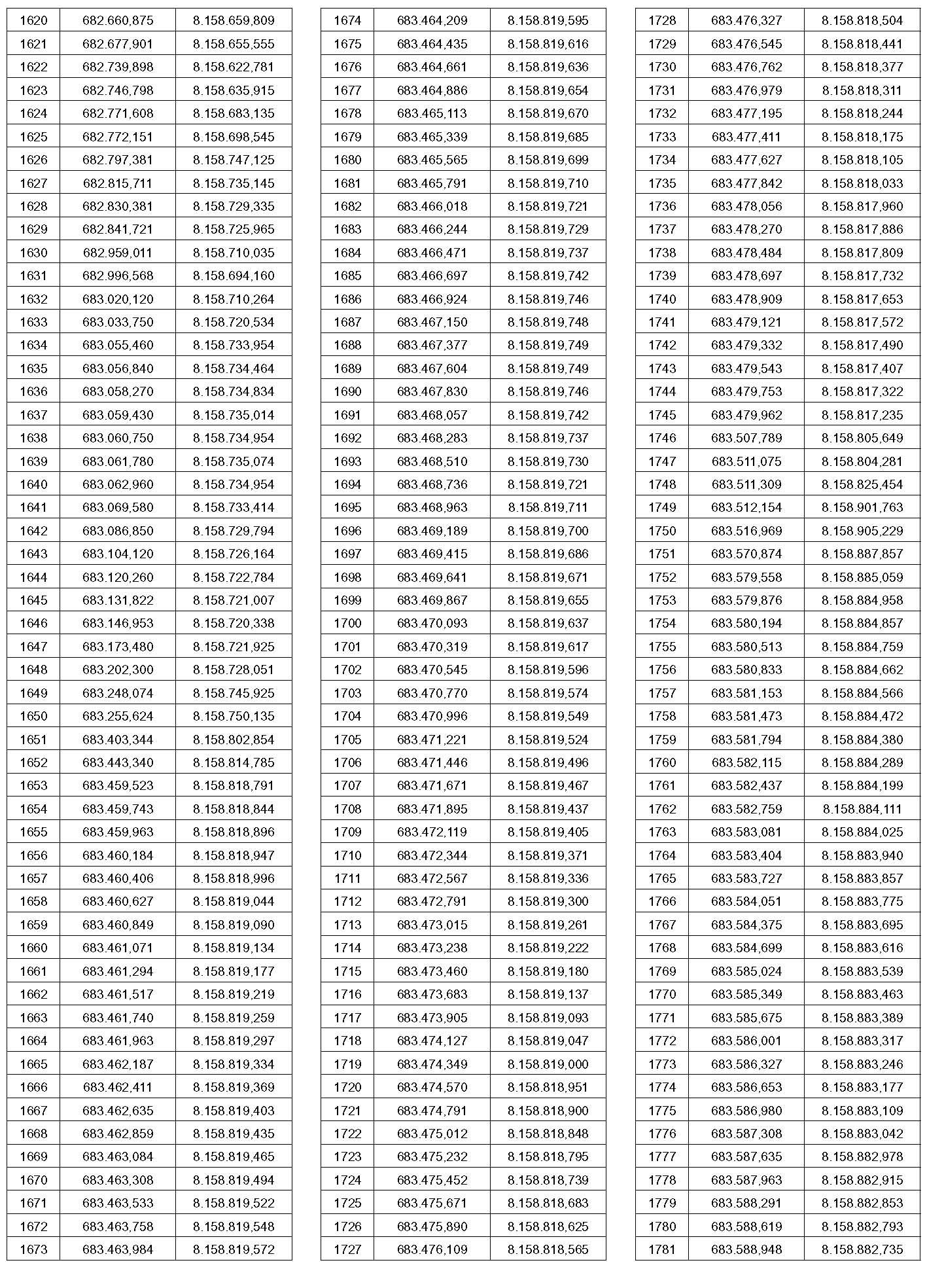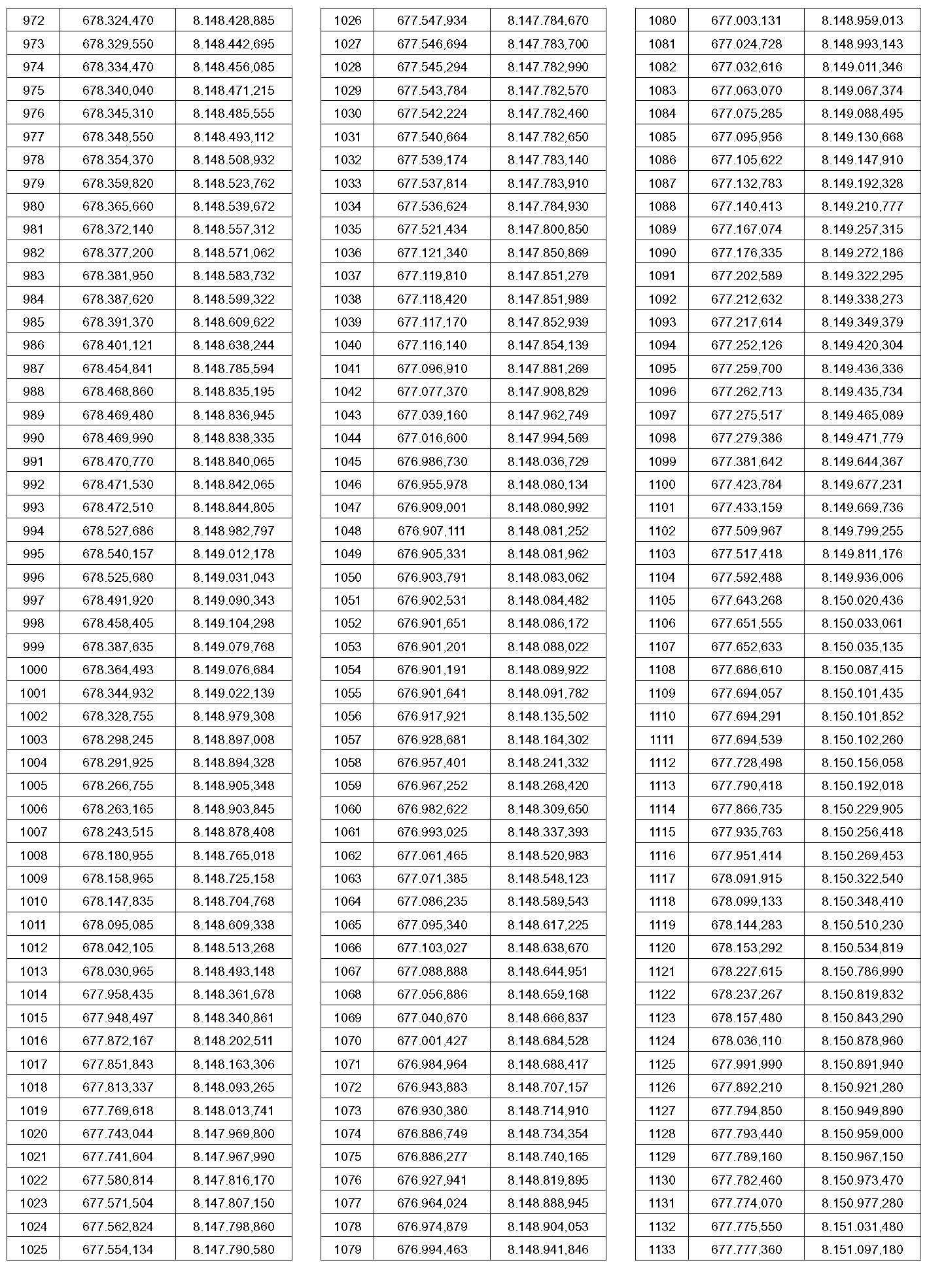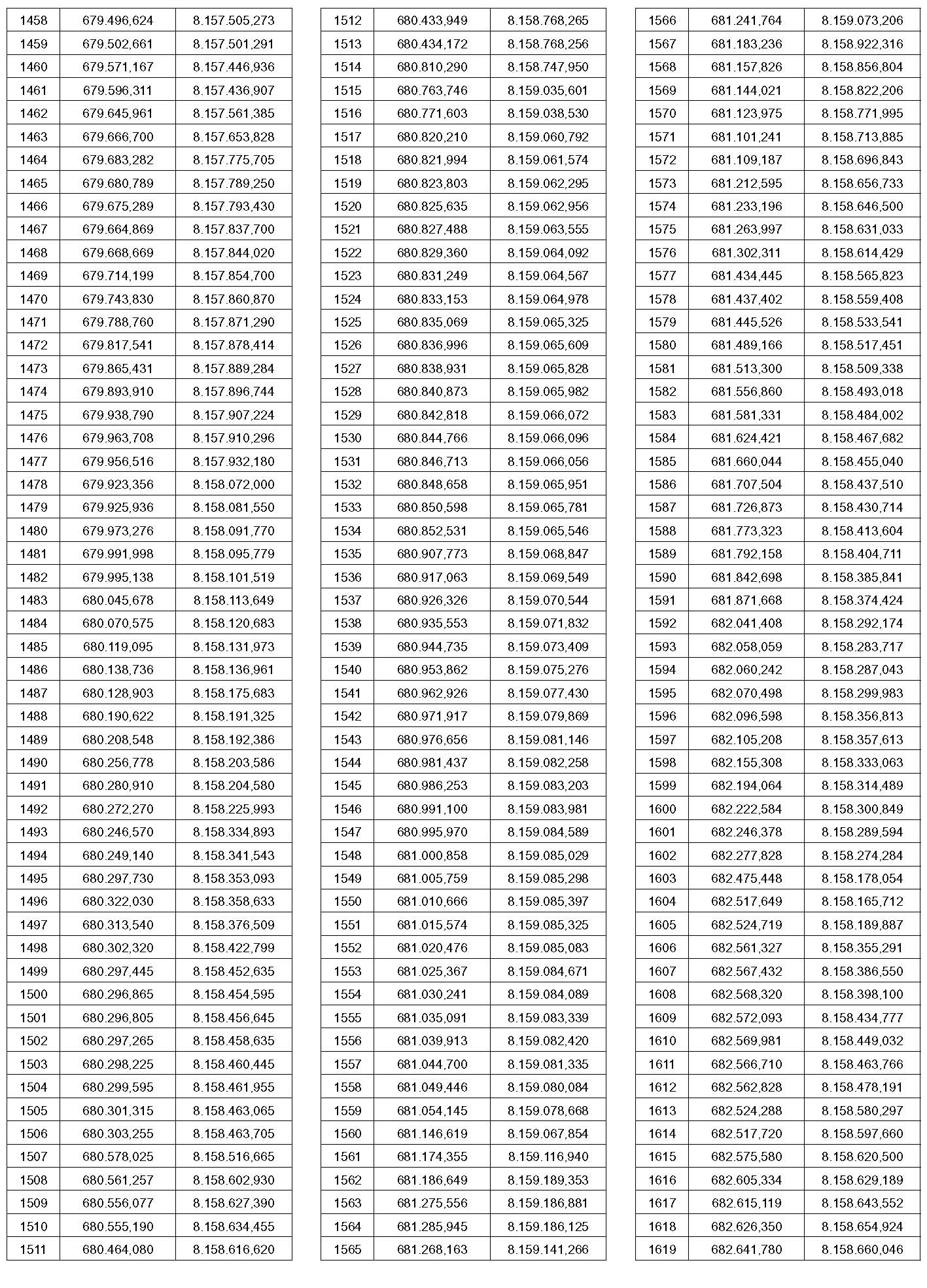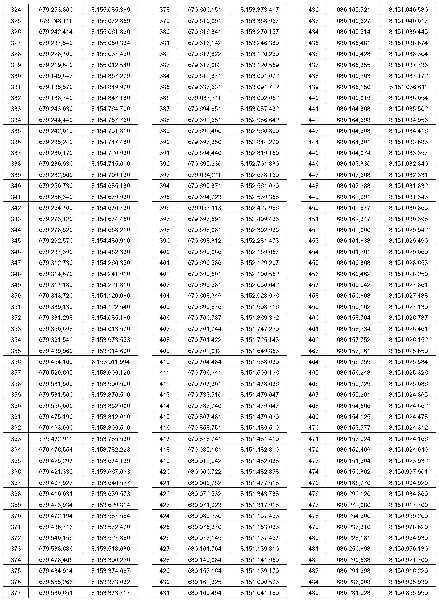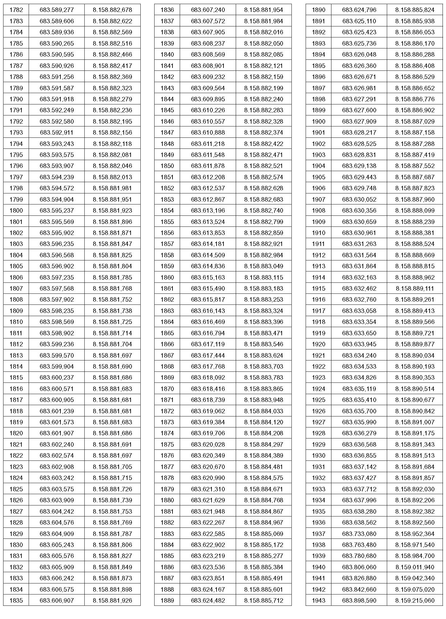 PTO – Identificação do ponto a que se referem às coordenadas contidas nesta tabela. O ponto pode ser visualizado no mapa que faz parte deste anexo.