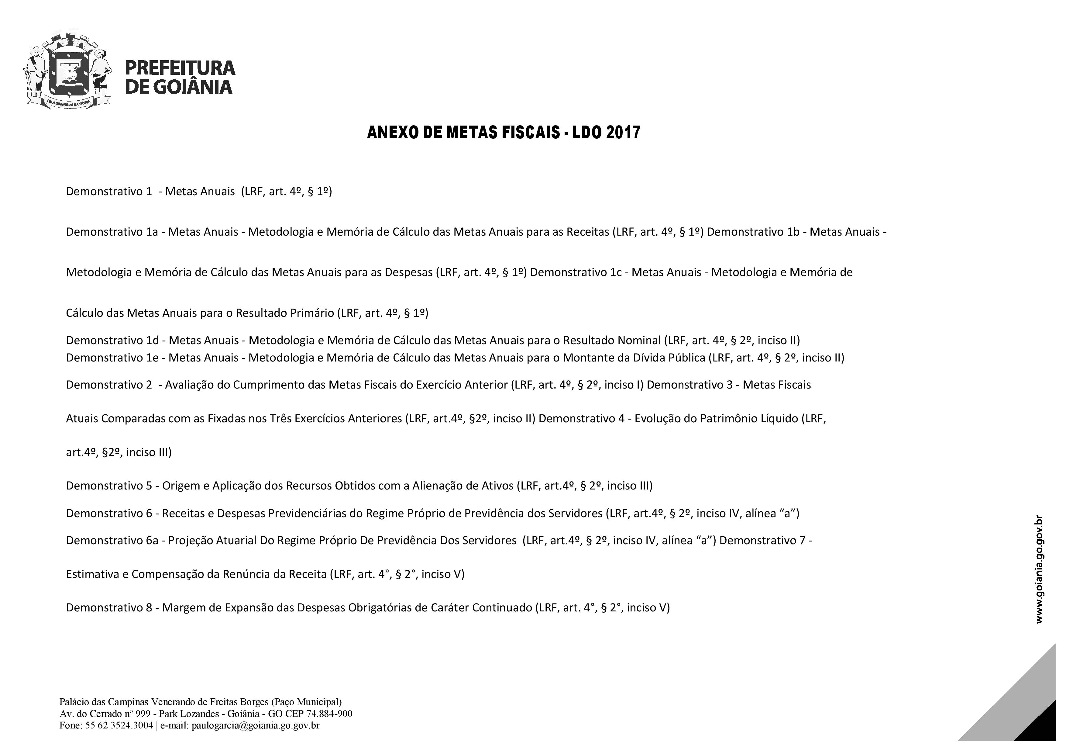 Art. 1º Em cumprimento ao disposto no art. 165, § 2º, da Constituição Federal, na Lei Complementar Federal nº. 101, de 04 de maio de 2000, e no art. 136, § 2º, da Lei Orgânica do Município de Goiânia, são estabelecidas as diretrizes orçamentárias para o exercício de 2017, compreendendo:
