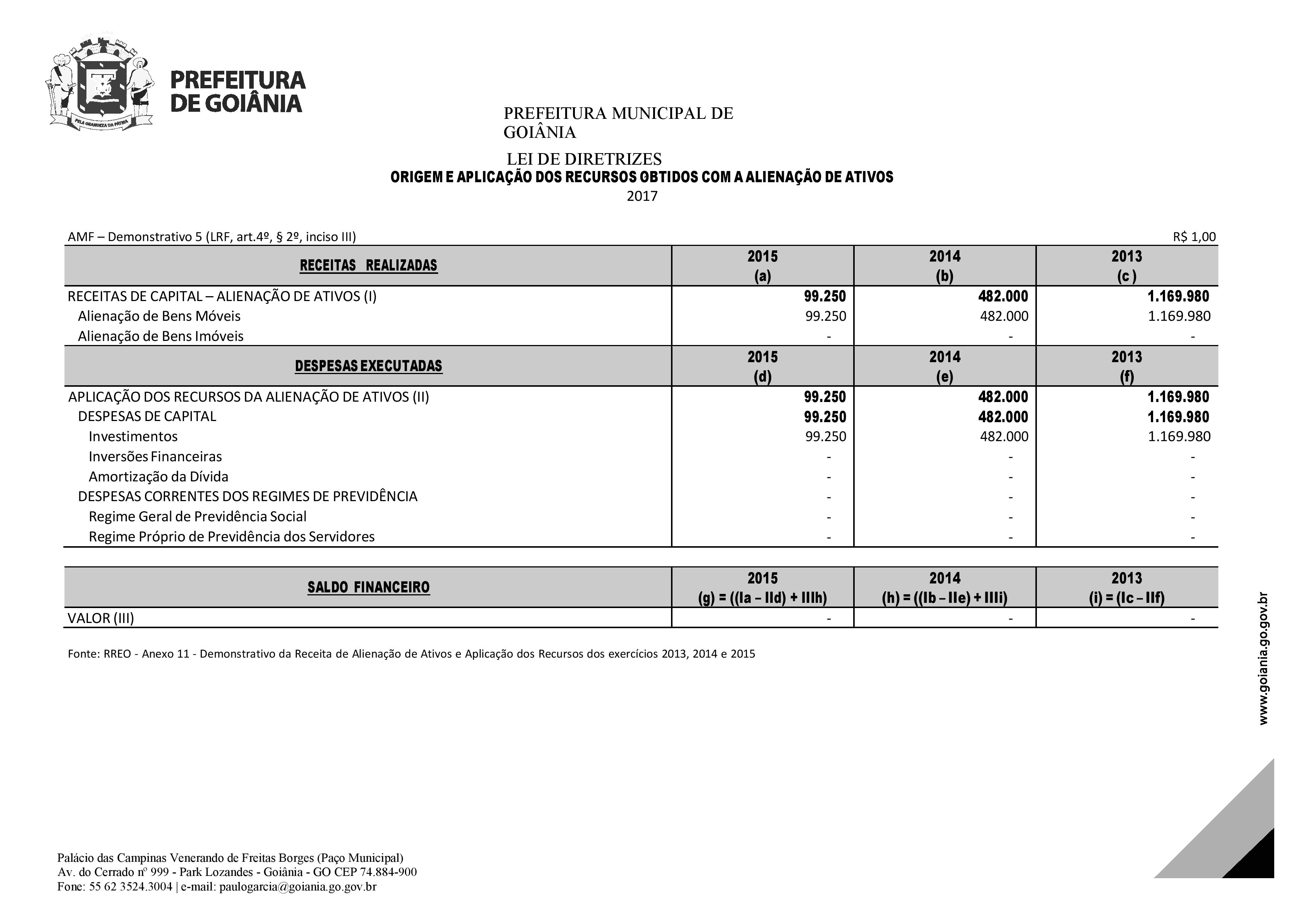 Art. 17. É vedada a utilização das Receitas de Capital derivadas da alienação de bens e direitos que integram o patrimônio público para o financiamento de despesas correntes, salvo se destinadas, por lei, a Fundo de Previdência de Servidores, conforme o disposto no art. 44, da Lei Complementar Federal nº. 101/2000.