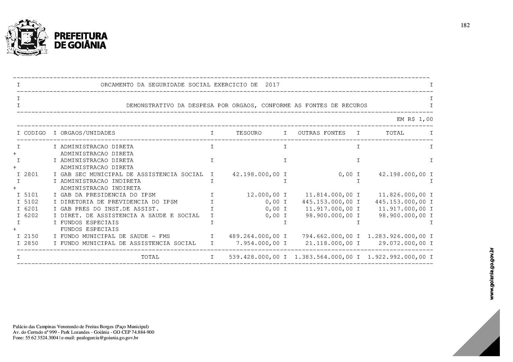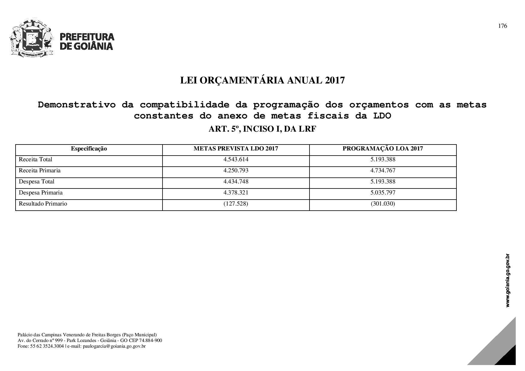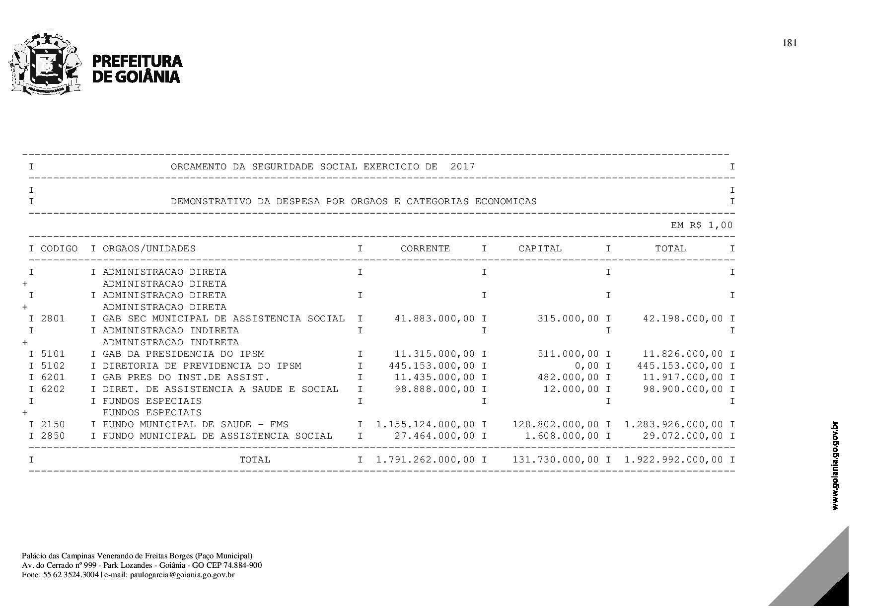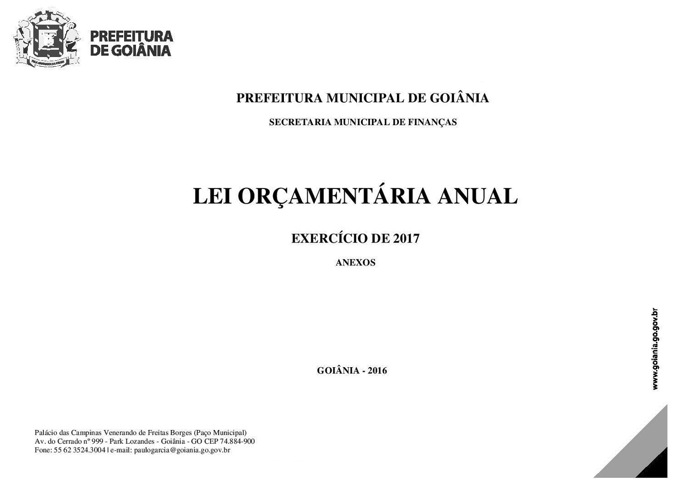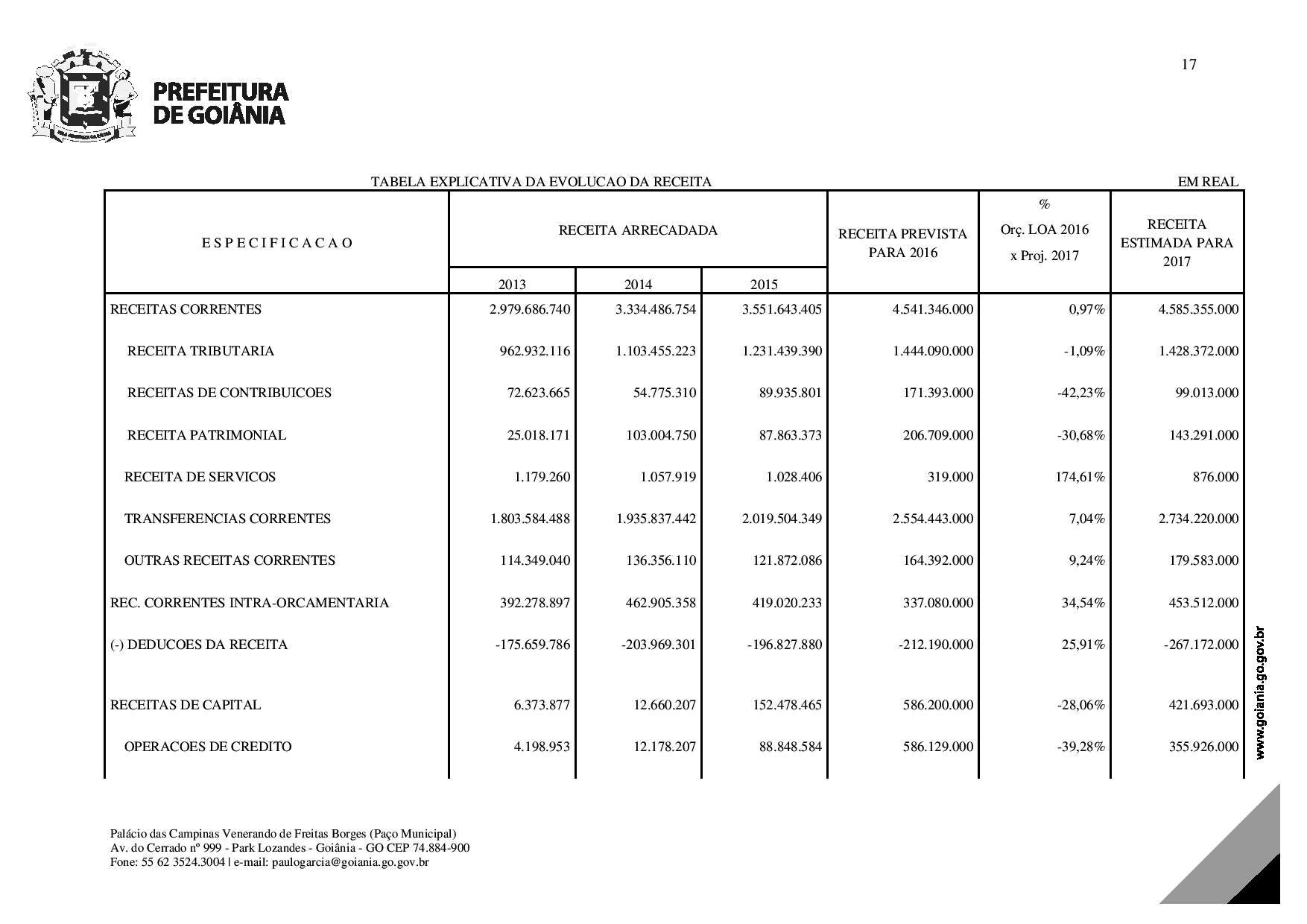 Estima a receita e fixa a despesa do Município de Goiânia, para o Exercício Financeiro de 2017.