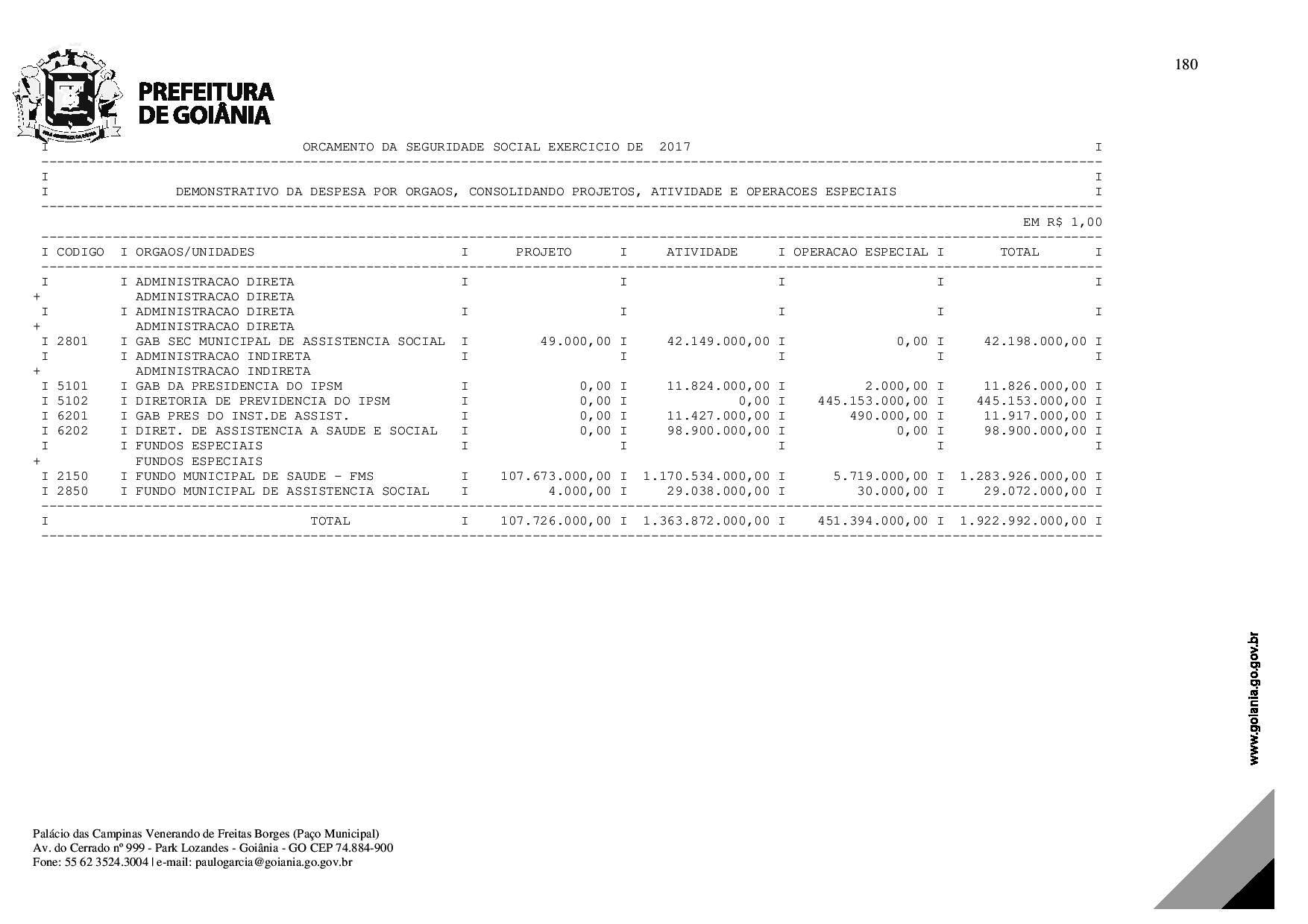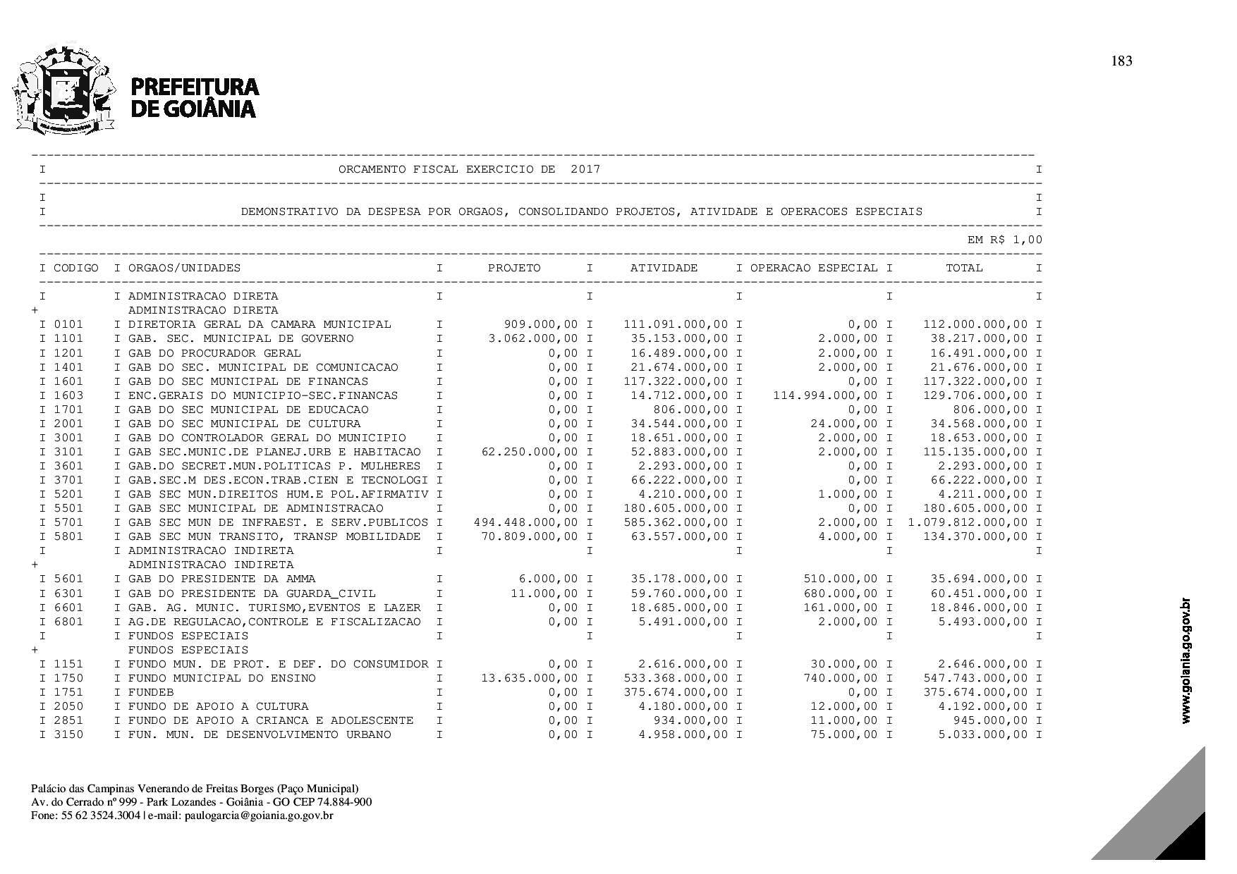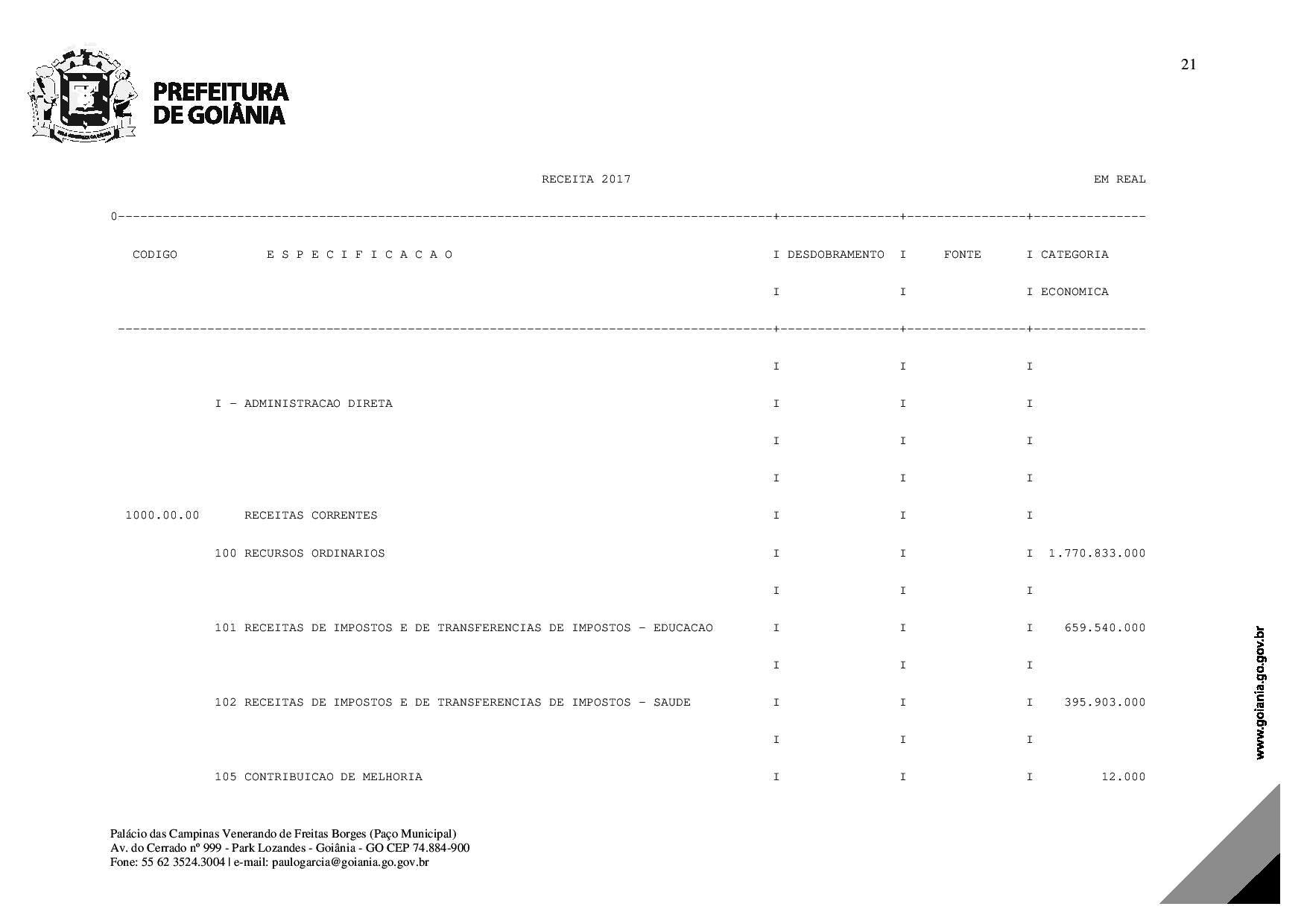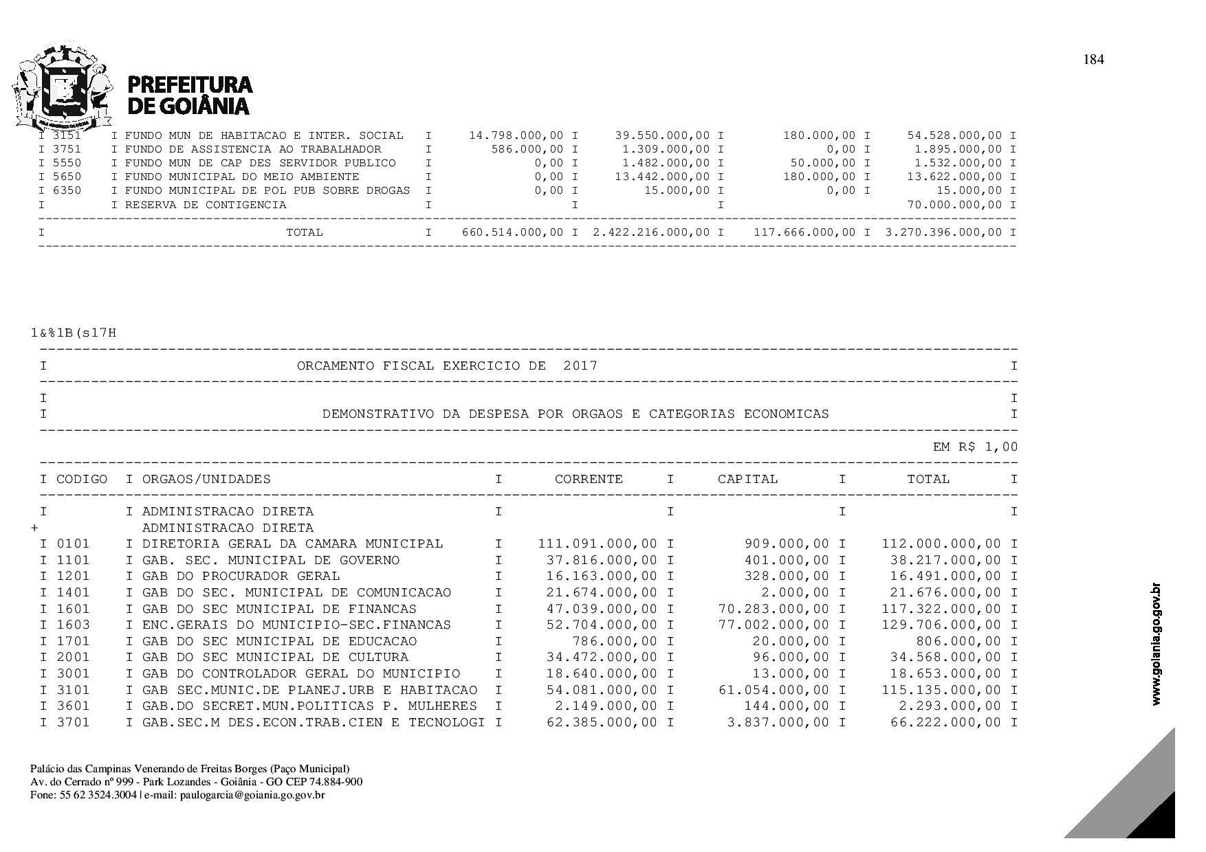 Estima a receita e fixa a despesa do Município de Goiânia, para o Exercício Financeiro de 2017.