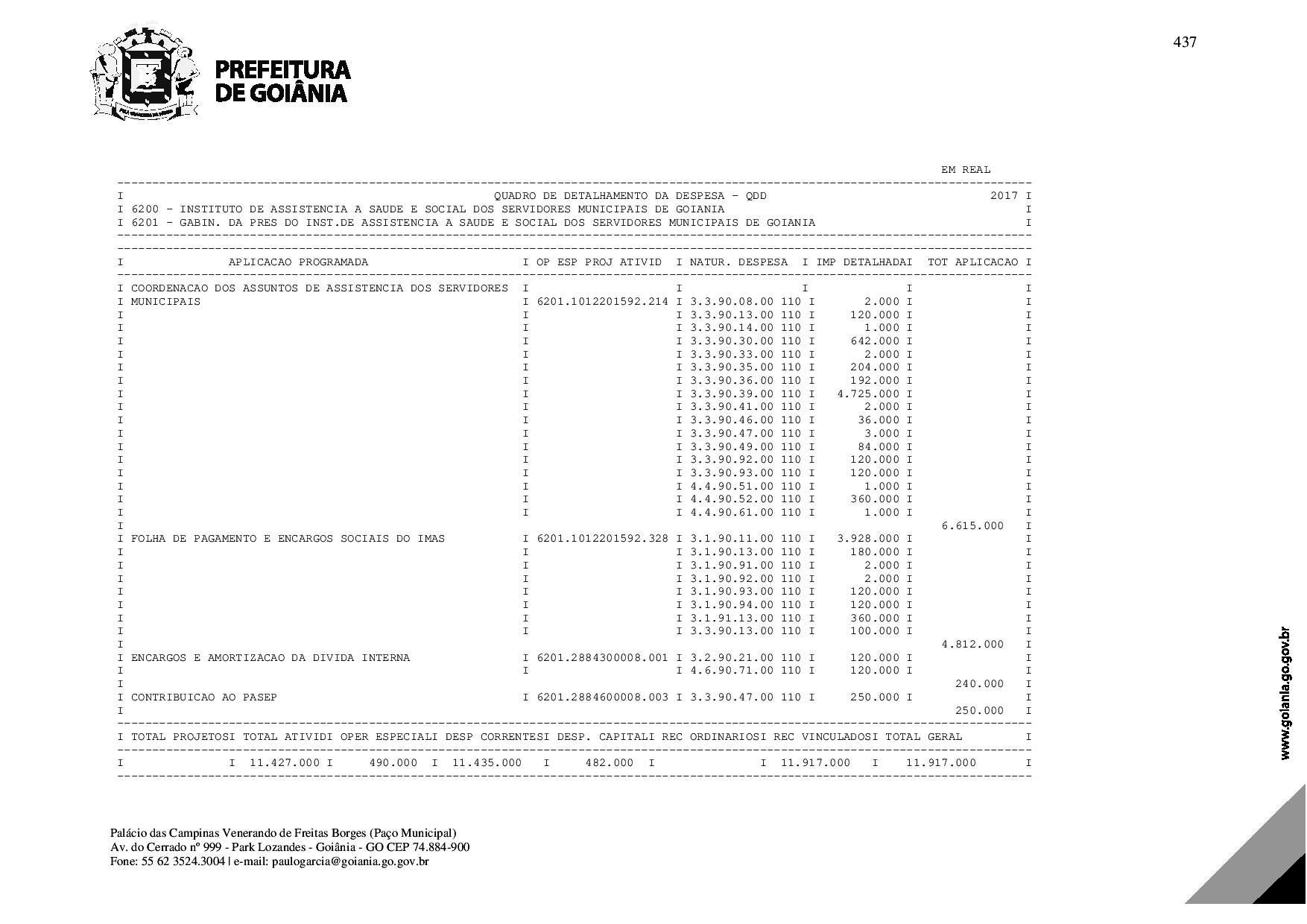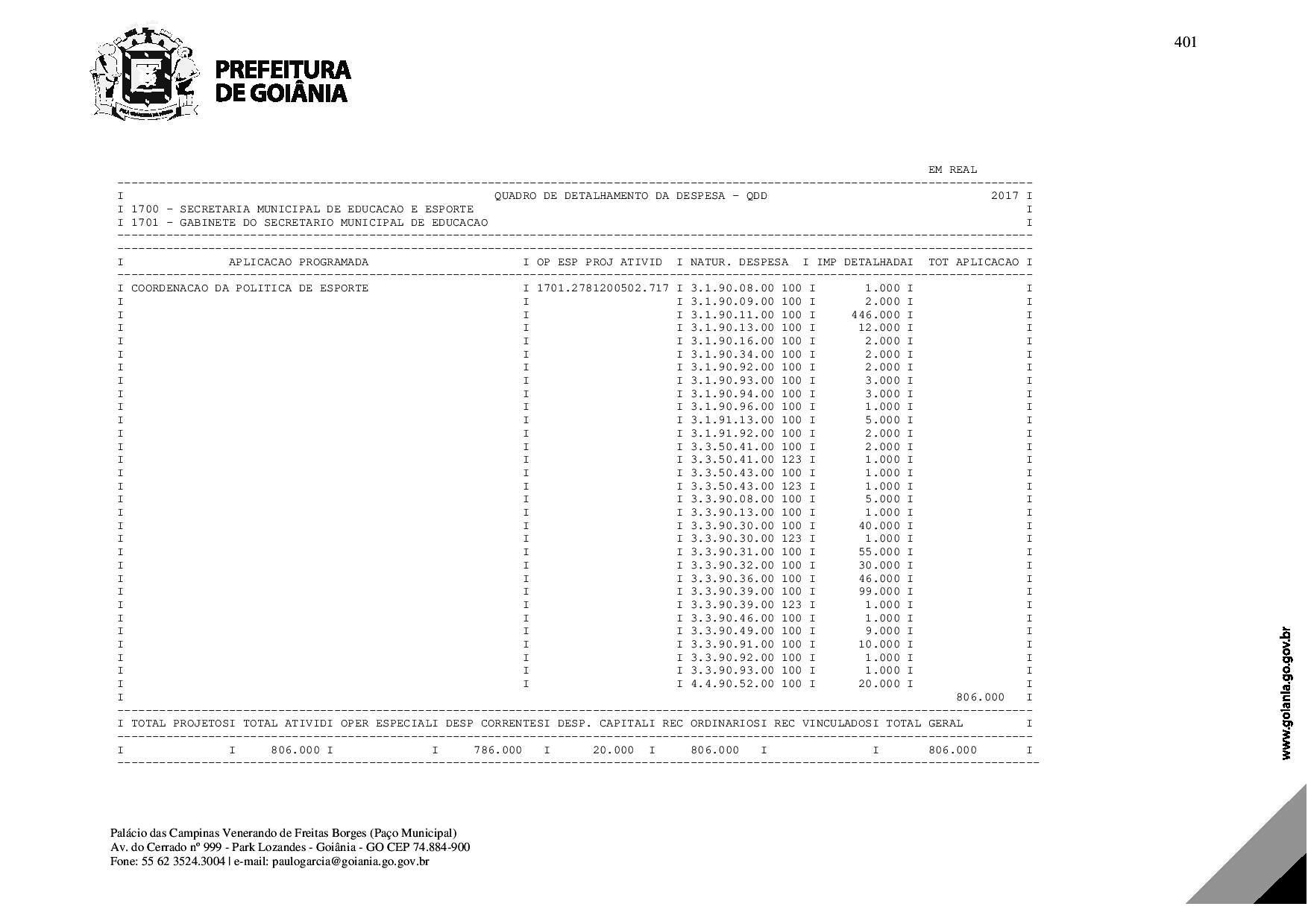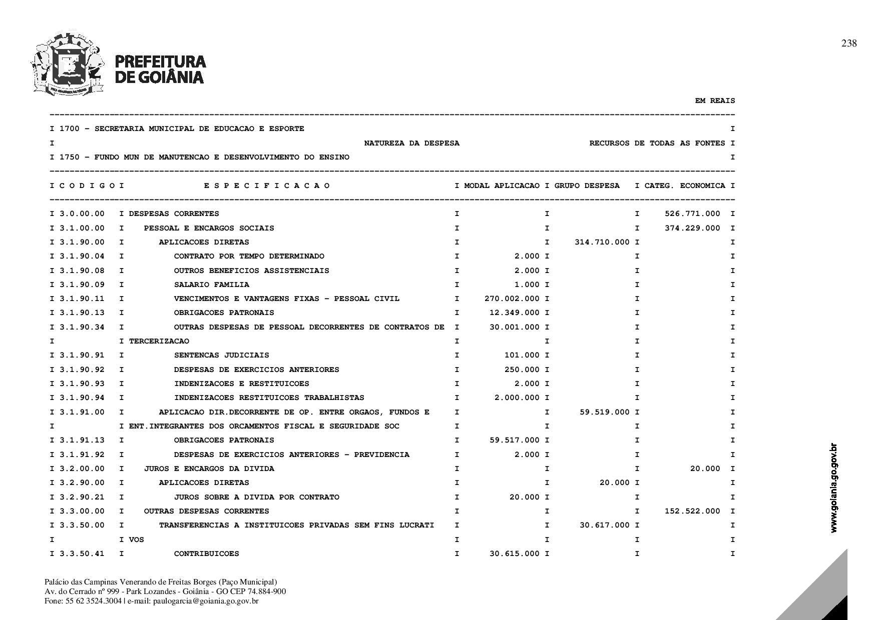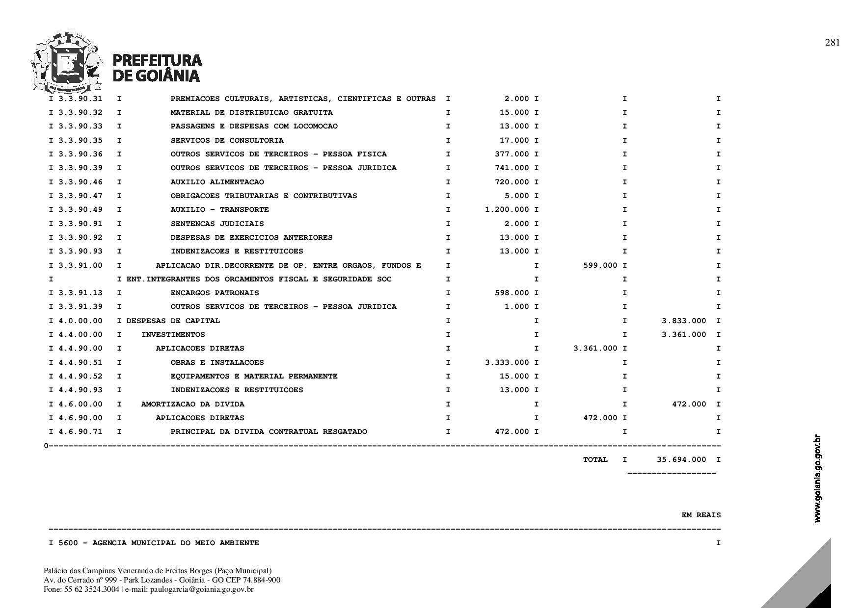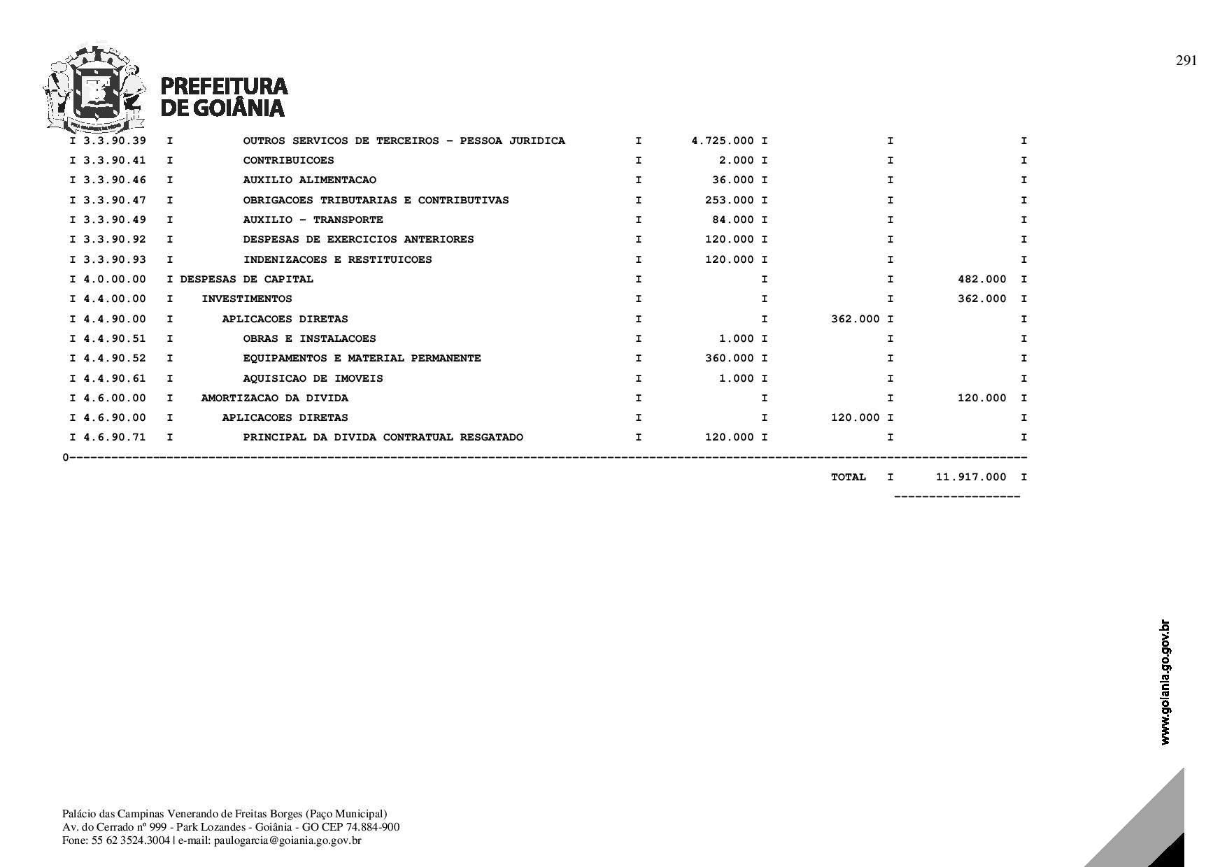 Estima a receita e fixa a despesa do Município de Goiânia, para o Exercício Financeiro de 2017.