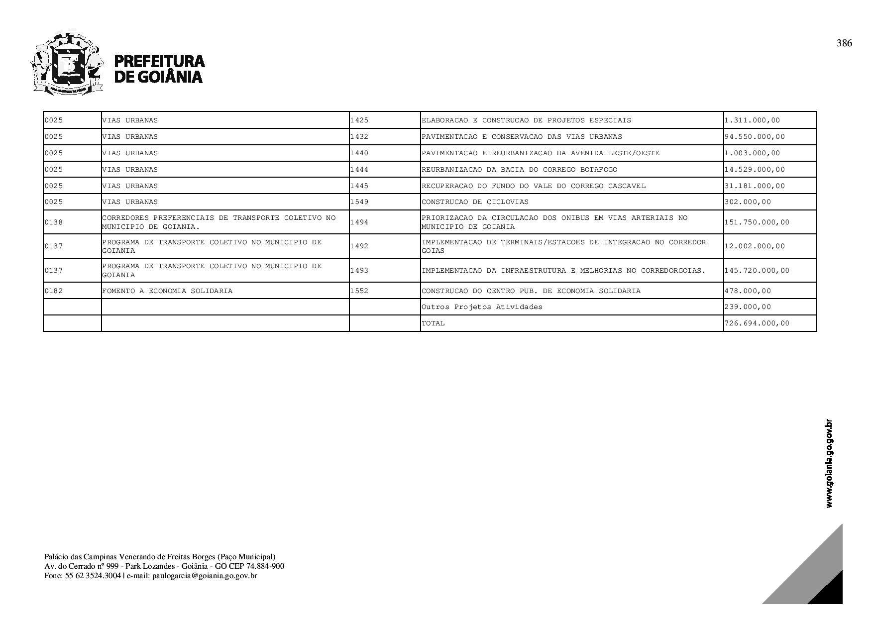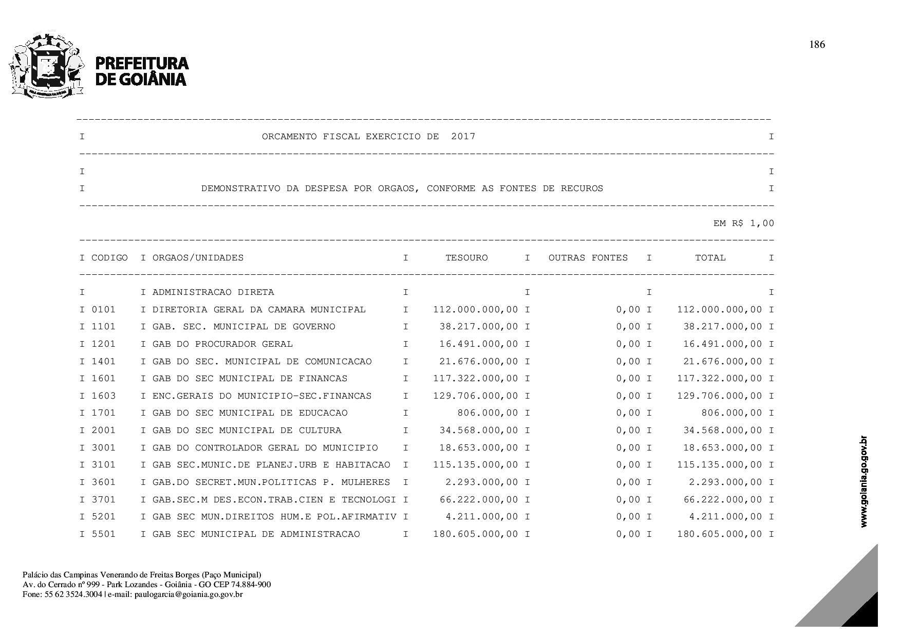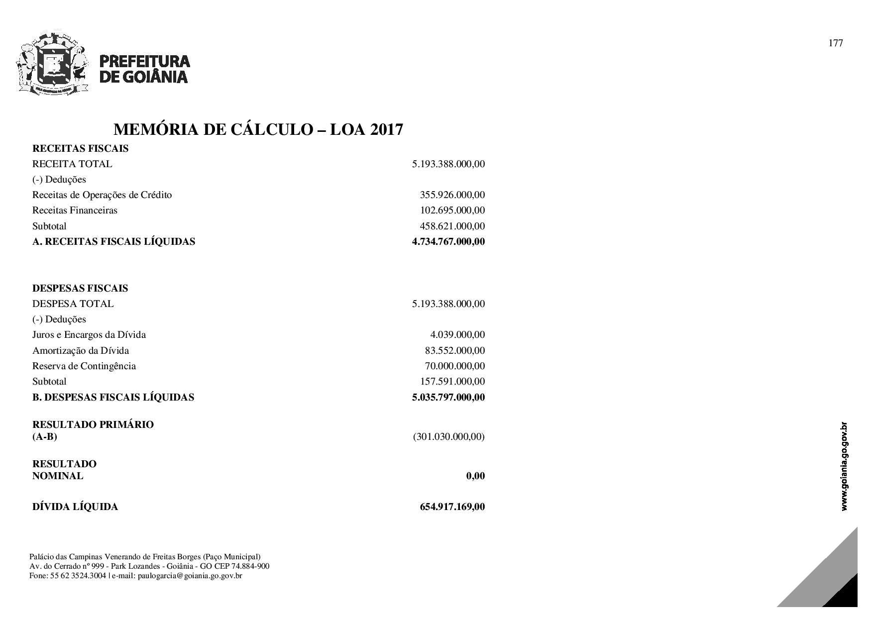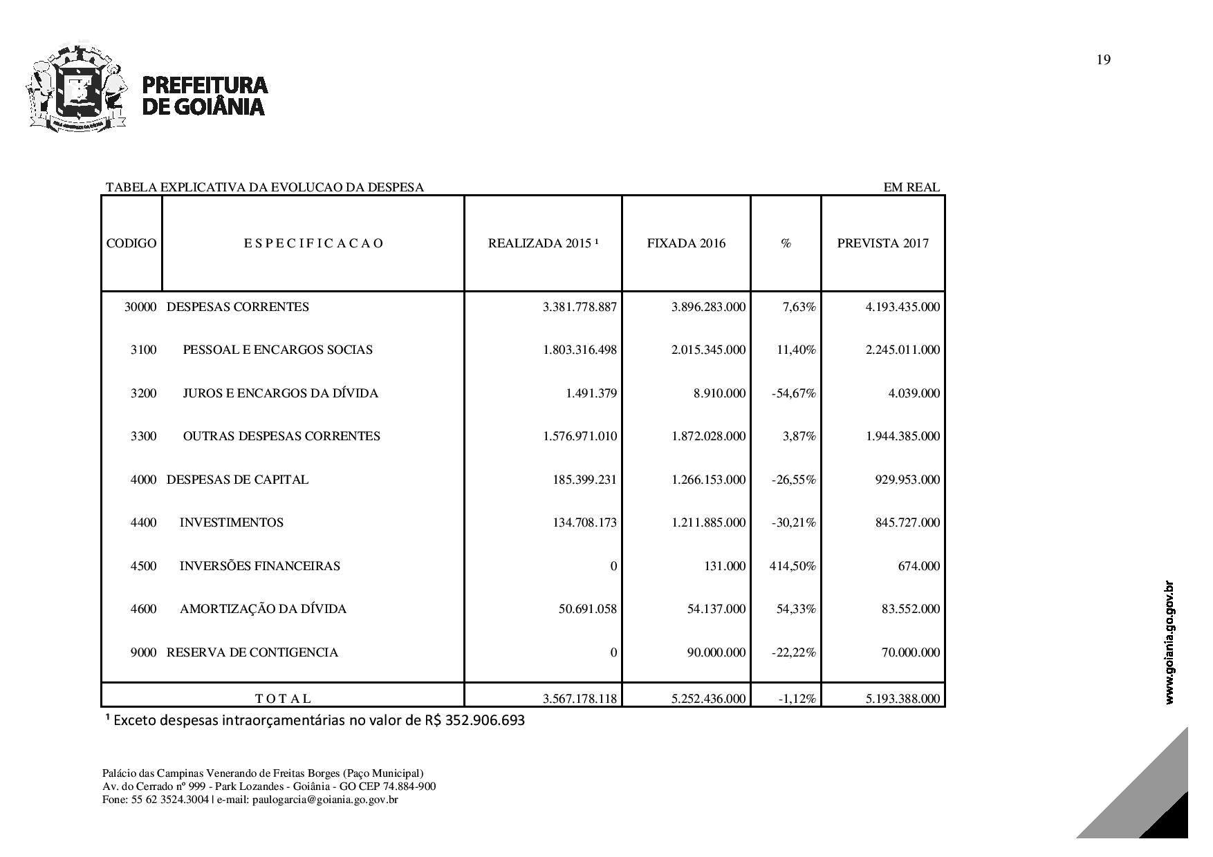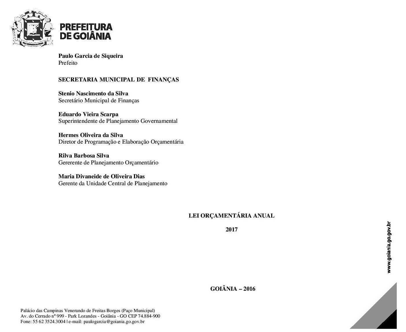 Nota: Ver Decreto nº 031, de 11 de janeiro de 2017 - dispõe sobre critérios a serem adotados na execução orçamentária e financeira do Poder Executivo do Município de Goiânia para o exercício de 2017.