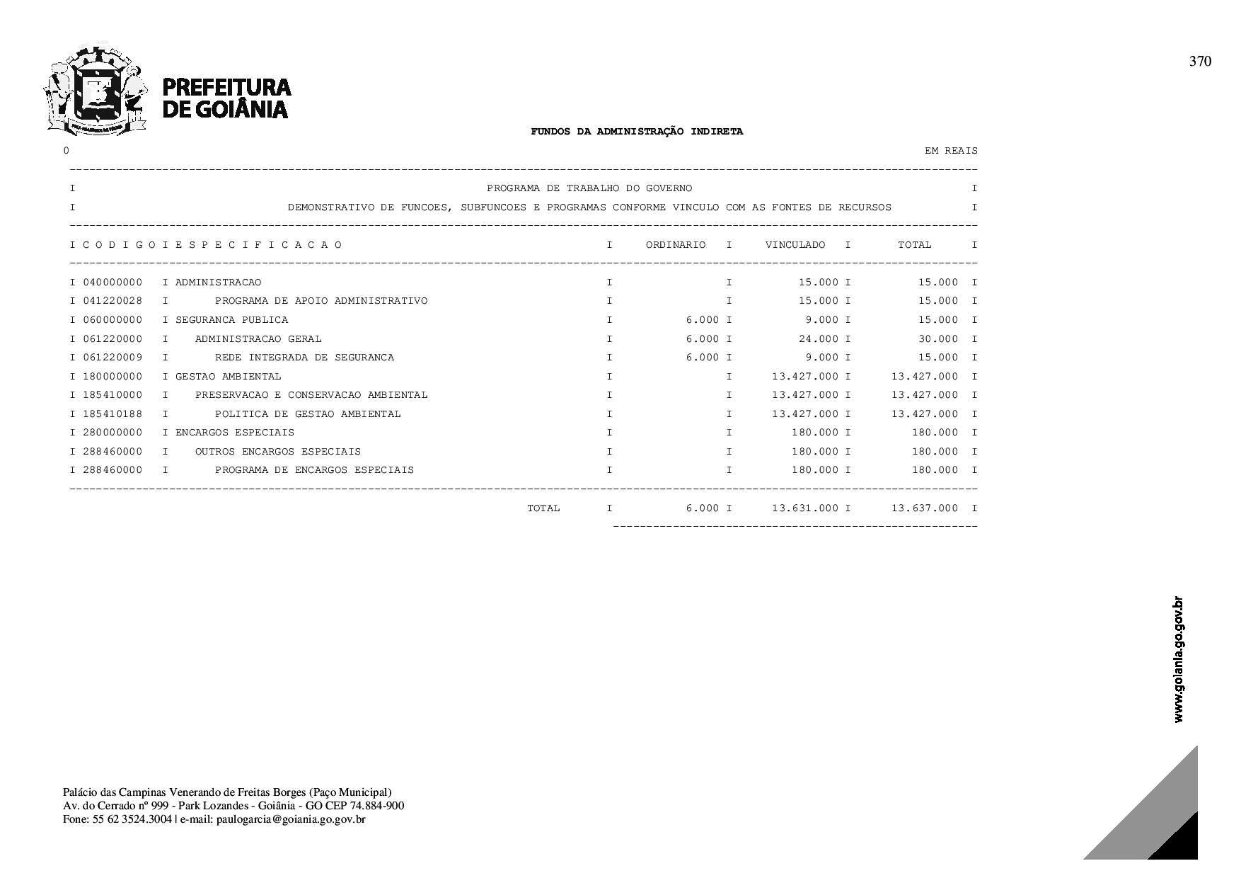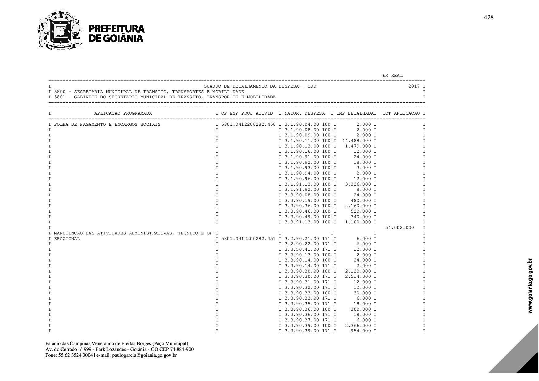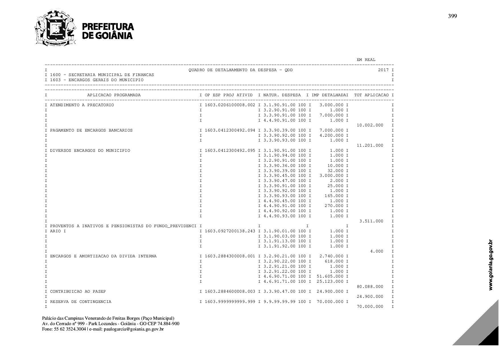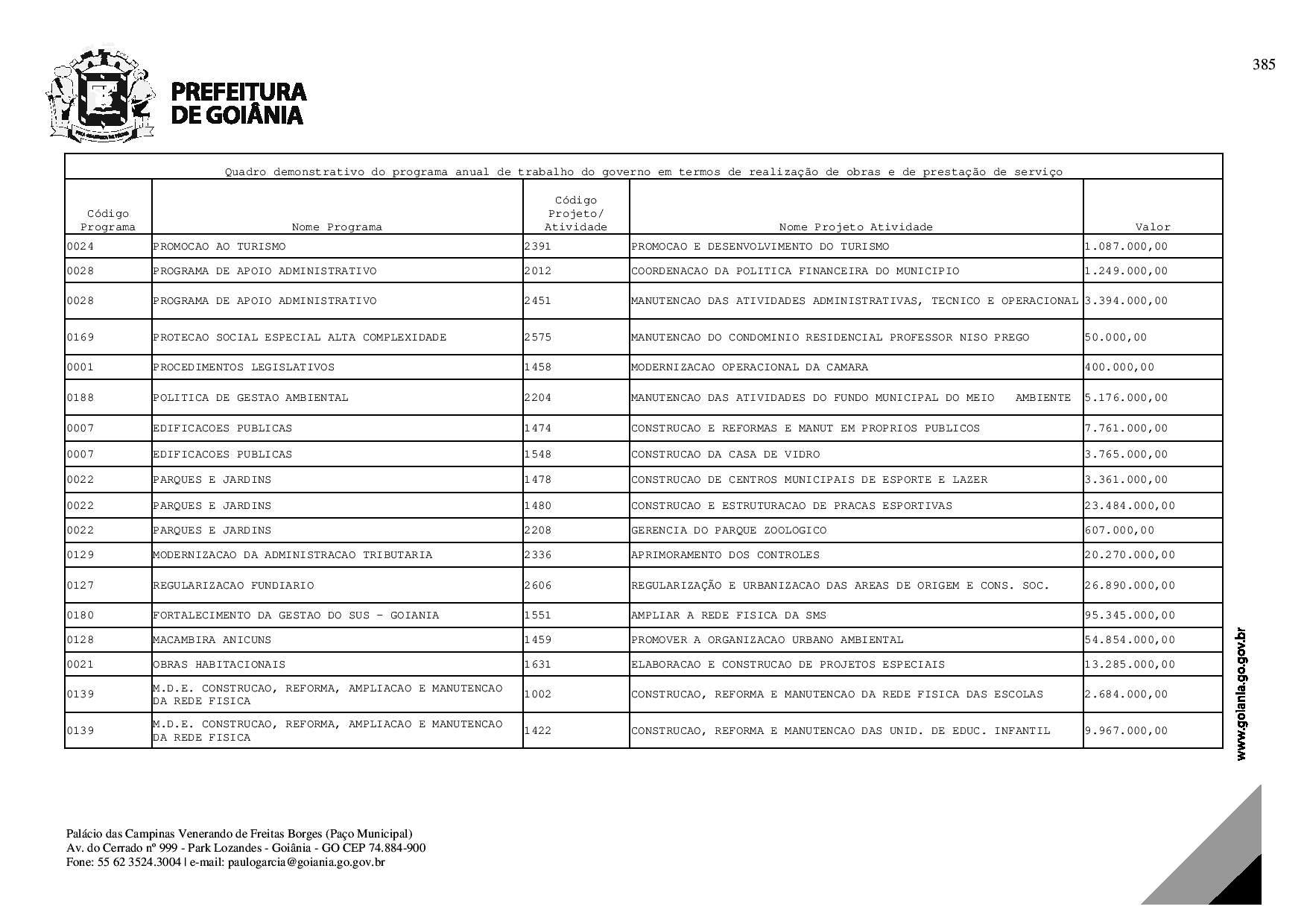 Nota: Ver Decreto nº 031, de 11 de janeiro de 2017 - dispõe sobre critérios a serem adotados na execução orçamentária e financeira do Poder Executivo do Município de Goiânia para o exercício de 2017.