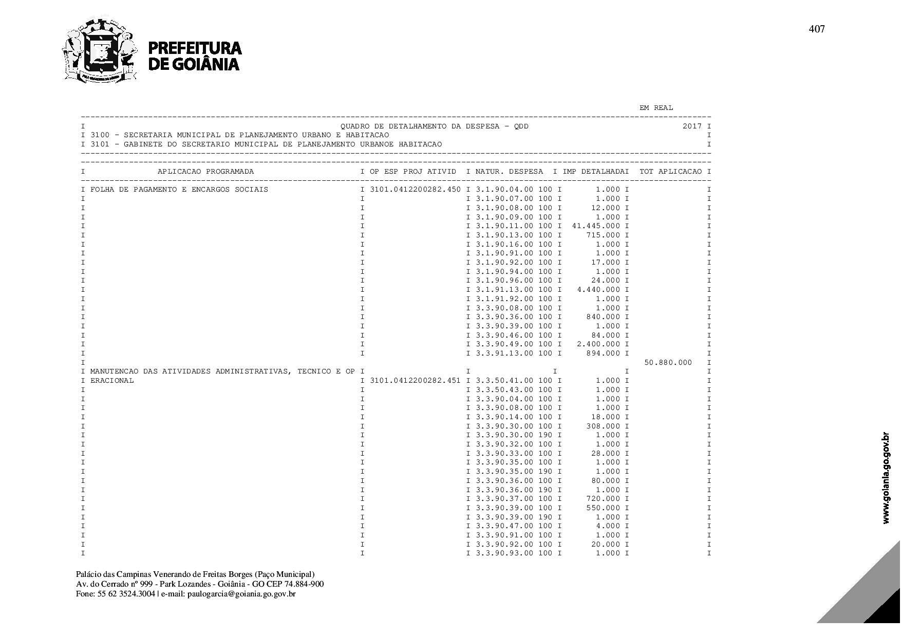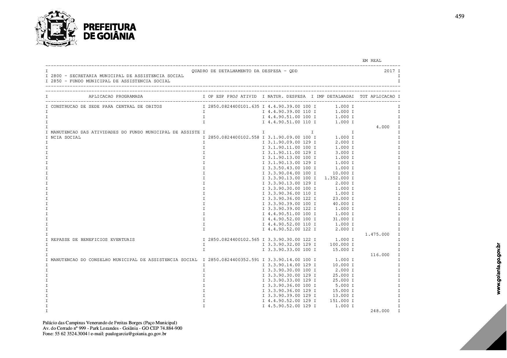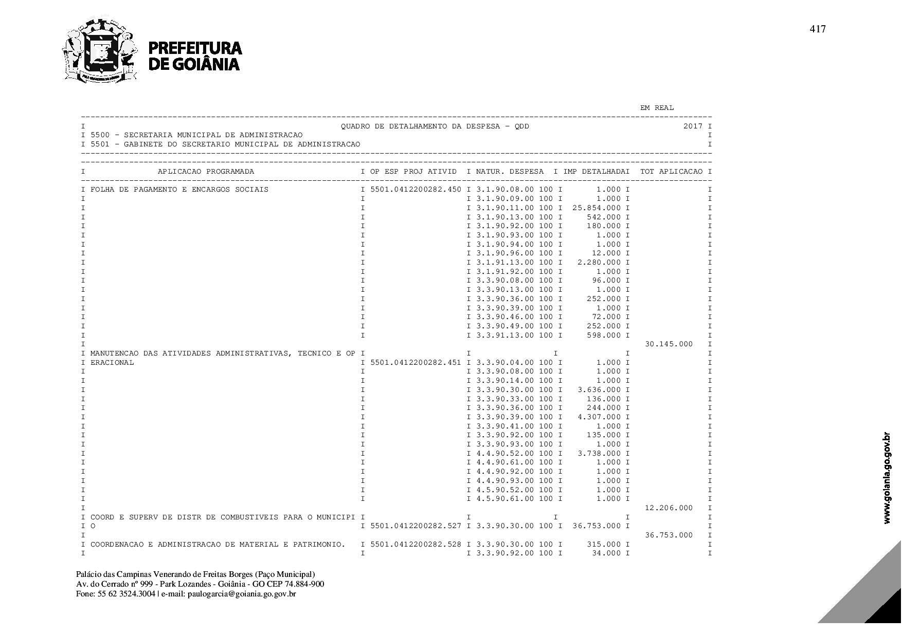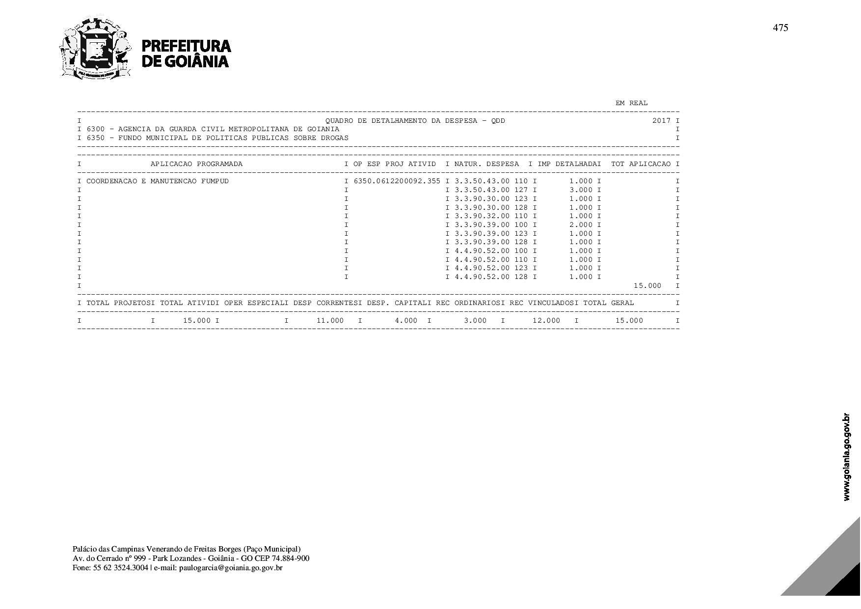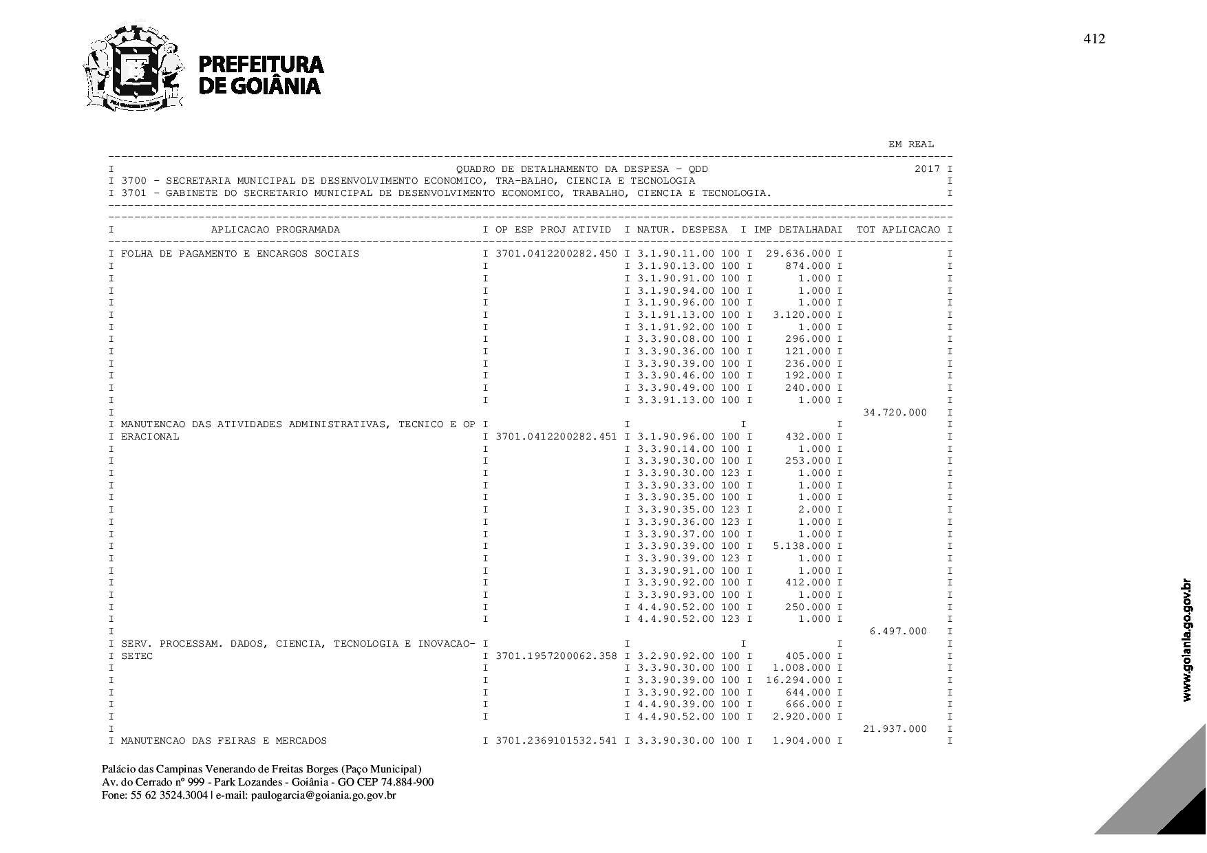 Nota: Ver Decreto nº 031, de 11 de janeiro de 2017 - dispõe sobre critérios a serem adotados na execução orçamentária e financeira do Poder Executivo do Município de Goiânia para o exercício de 2017.