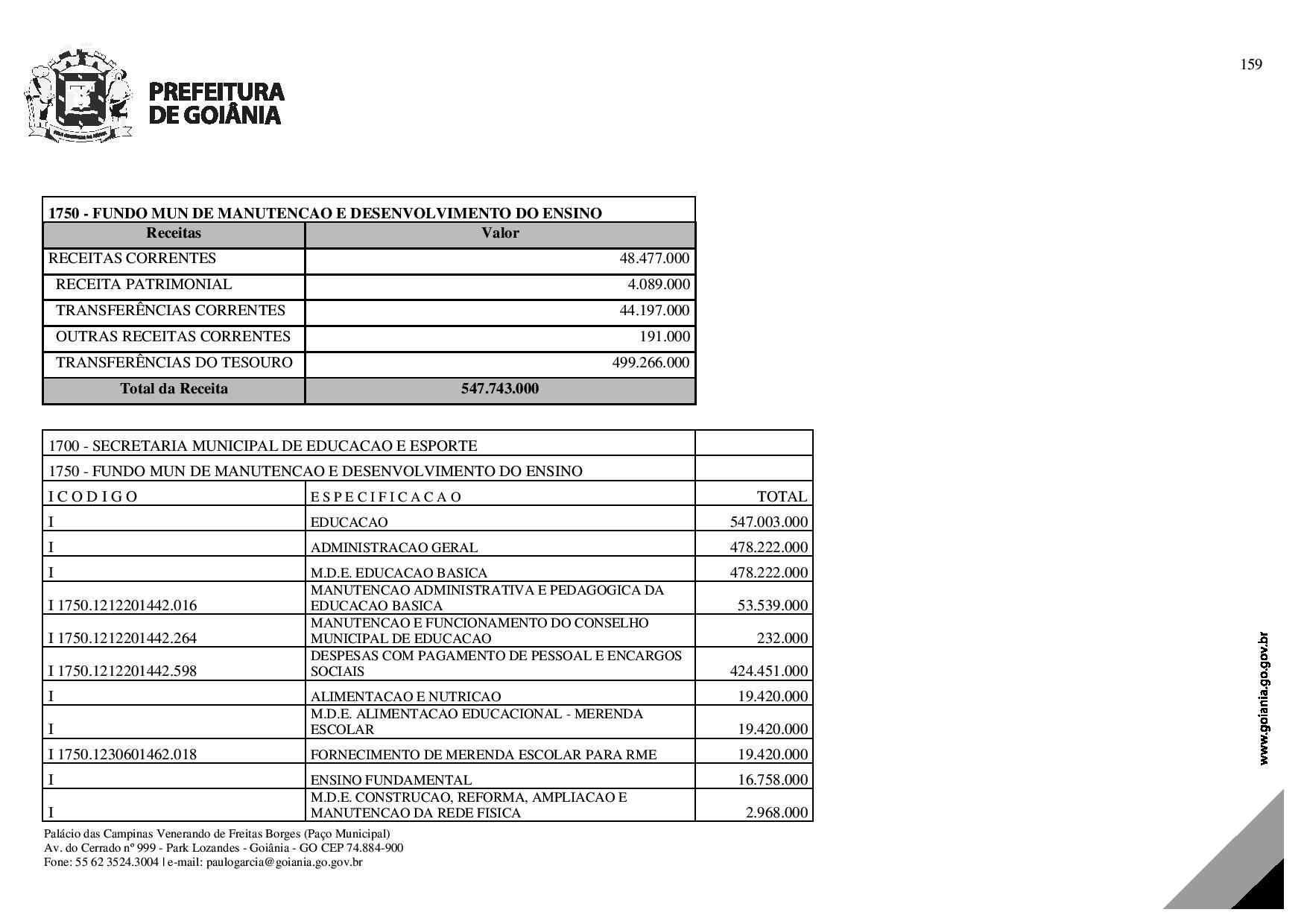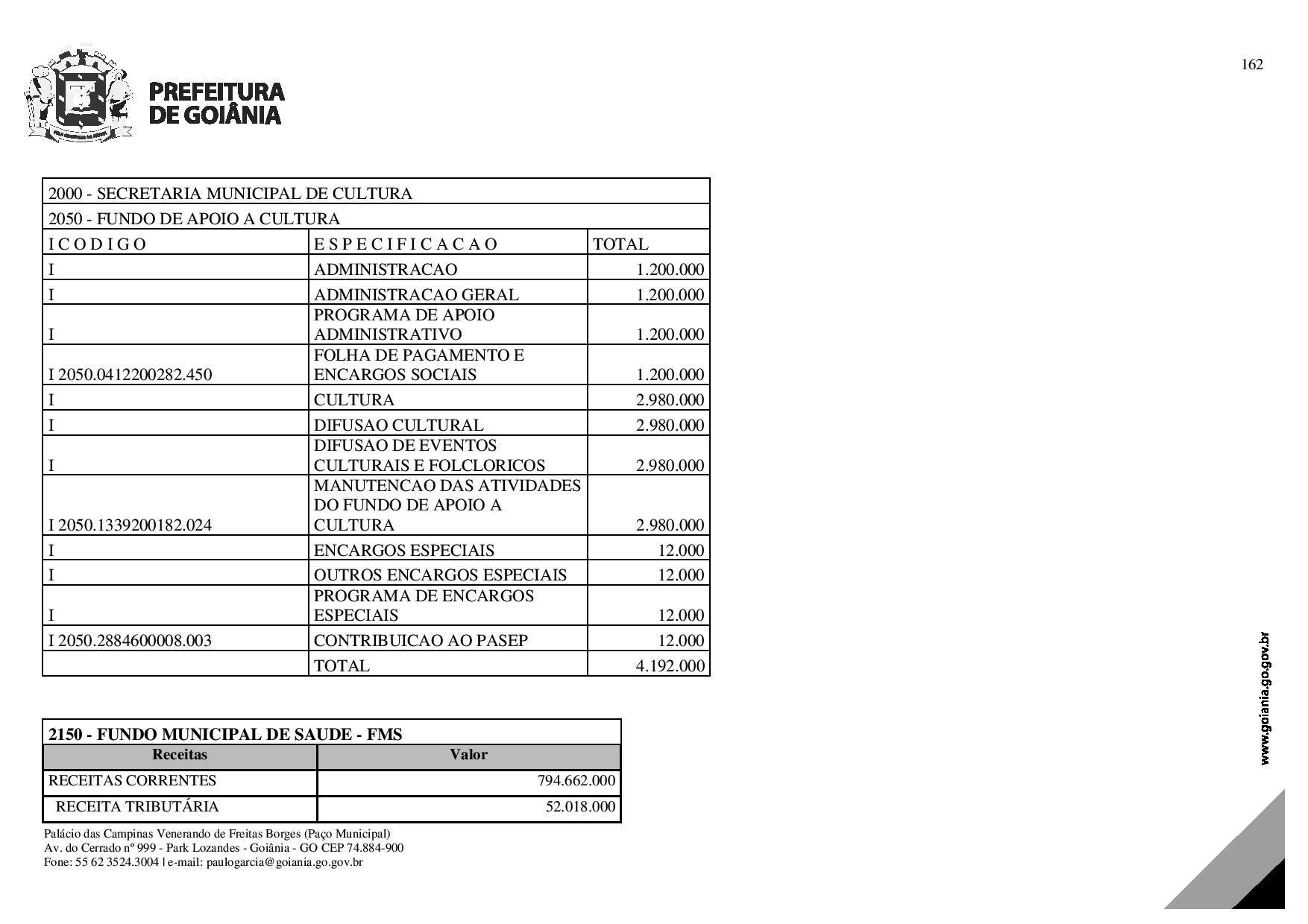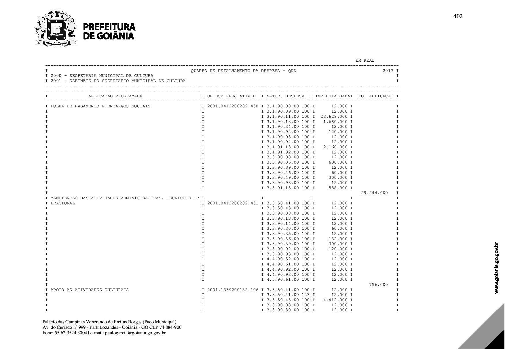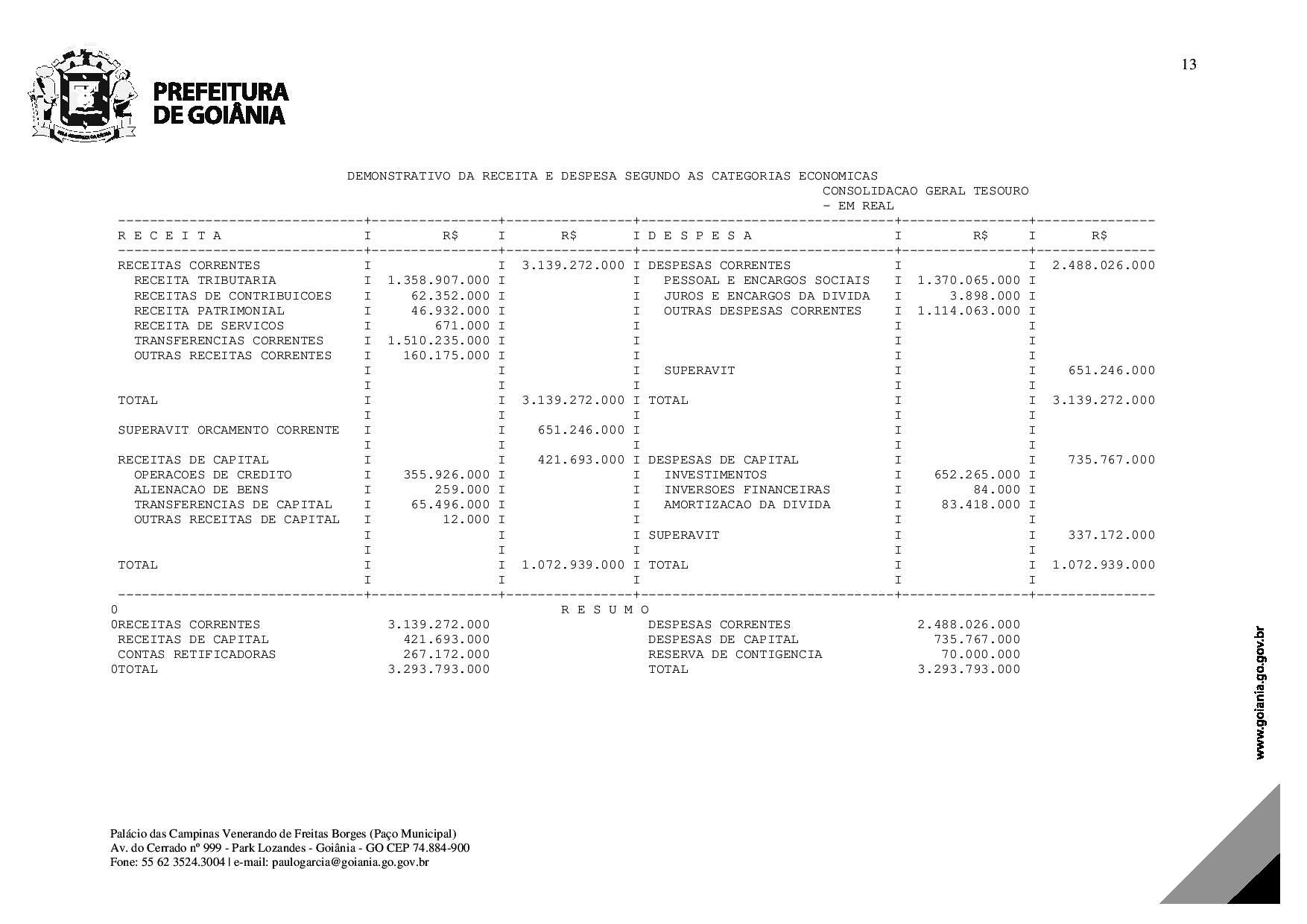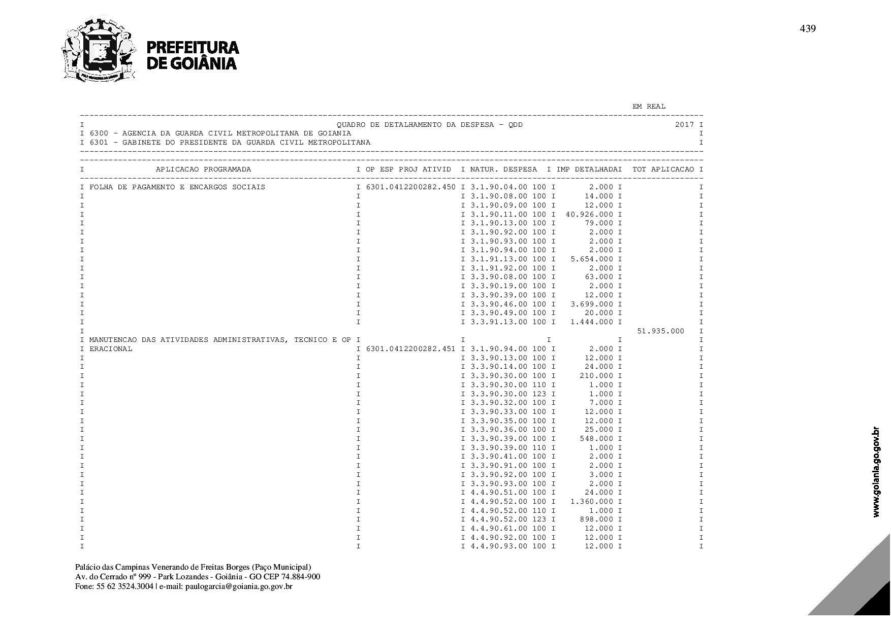 Nota: Ver Decreto nº 031, de 11 de janeiro de 2017 - dispõe sobre critérios a serem adotados na execução orçamentária e financeira do Poder Executivo do Município de Goiânia para o exercício de 2017.