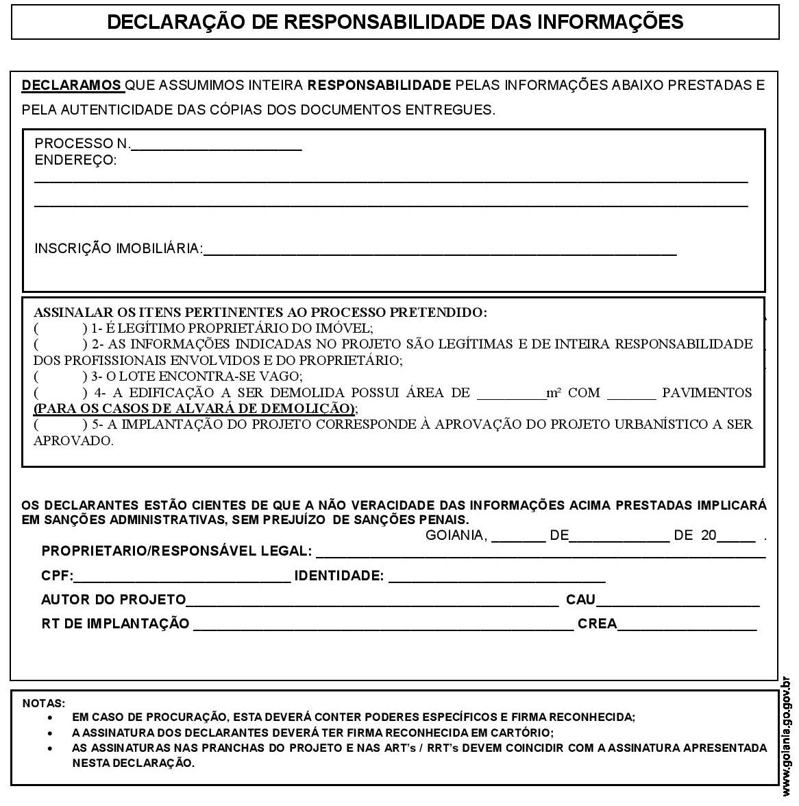 DECLARAÇÃO DE RESPONSABILIDADE DAS INFORMAÇÕES
