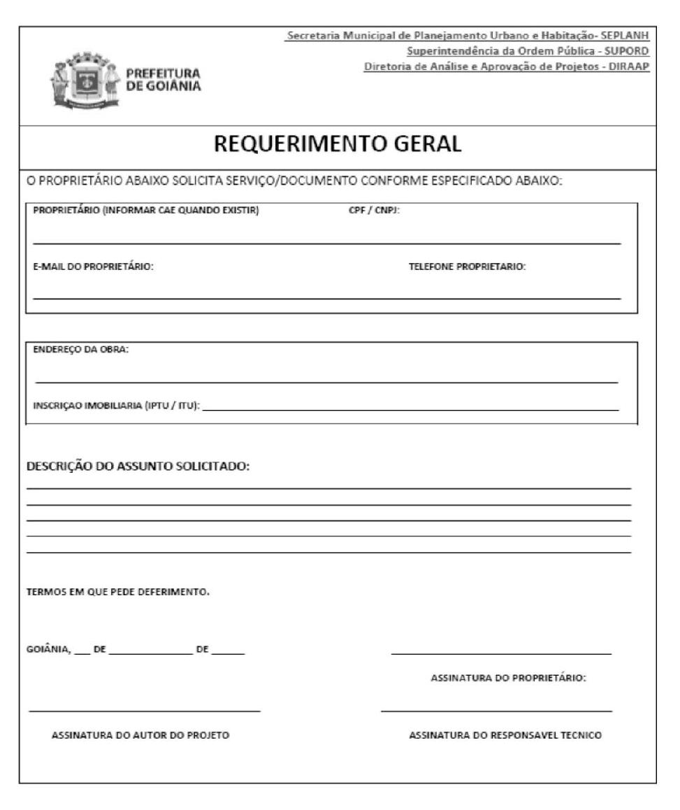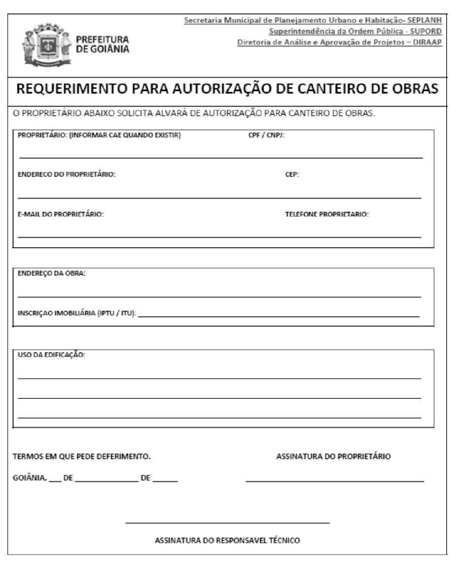 14.1 - Requerimento de autorização de canteiro de obras, preenchido e assinado conforme modelo;