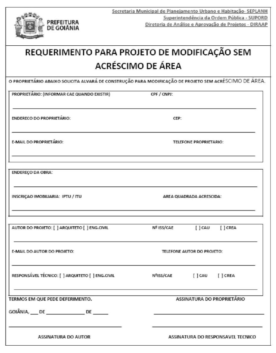 10.1 - Requerimento de alvará de acréscimo, preenchido e assinado conforme modelo;