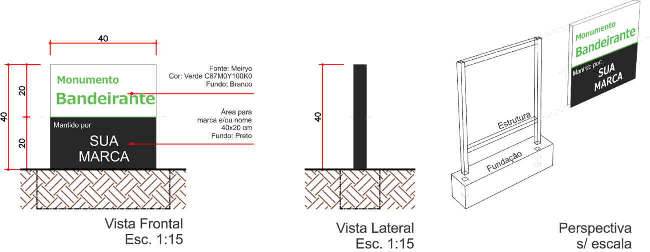 Obs.: outros formatos e proporções serão admitidos desde que respeitado a área máxima de 0,01 m² para identificação do adotante, em cada mobília |