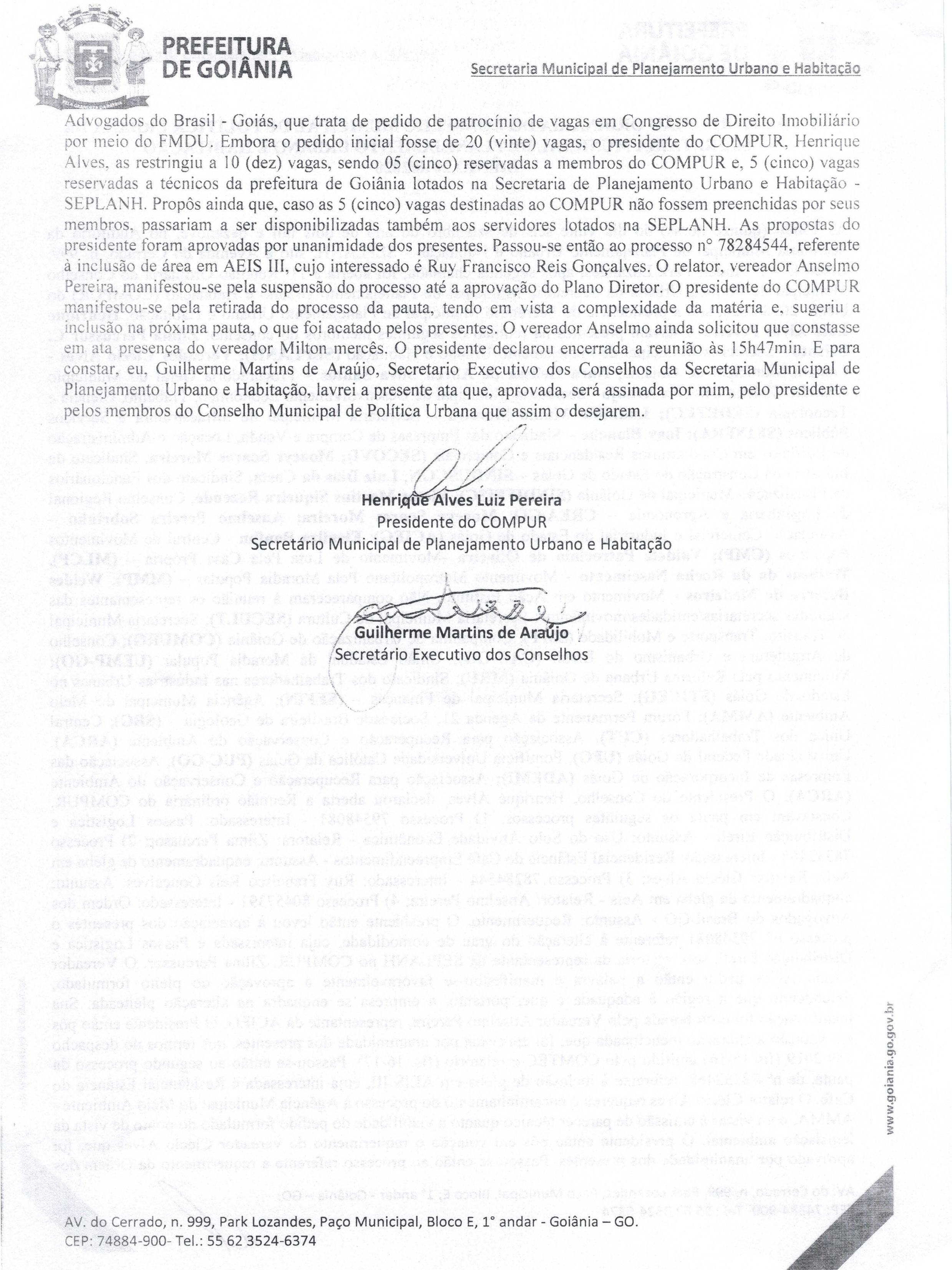 GABINETE DO PREFEITO DE GOIÂNIA, aos 07 dias do mês de janeiro de 2020.