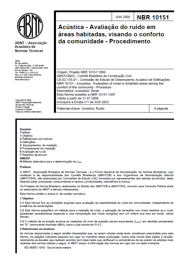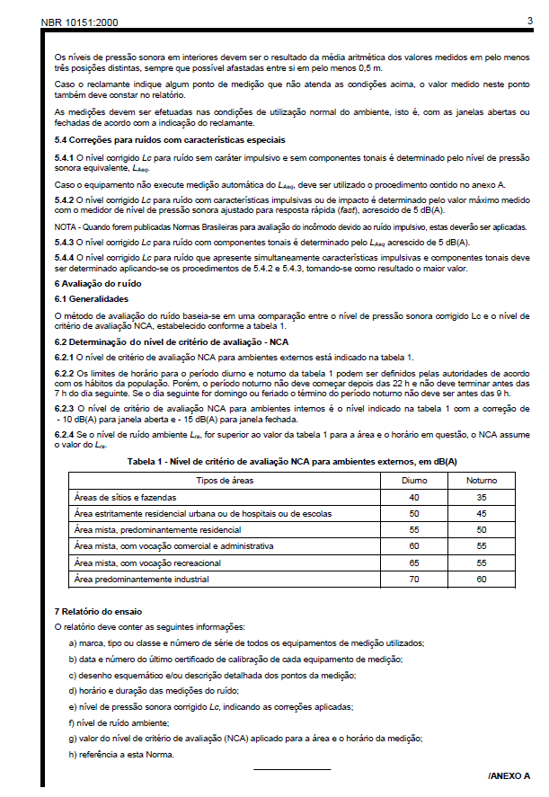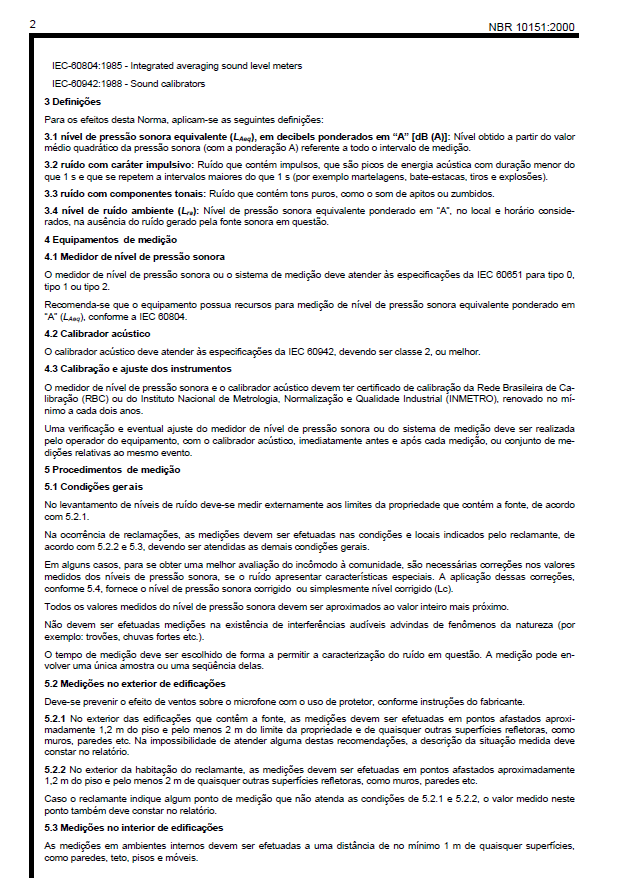 Art. 3º Serão adotados os procedimentos da Norma Brasileira nº 10.151, da Associação Brasileira de Normas Técnicas, de 31 de julho de 2000 (ABNT NBR nº 10.151:2000), constantes no Anexo Único desta Instrução Normativa, até a data de que trata o art. 2º também desta Instrução Normativa.