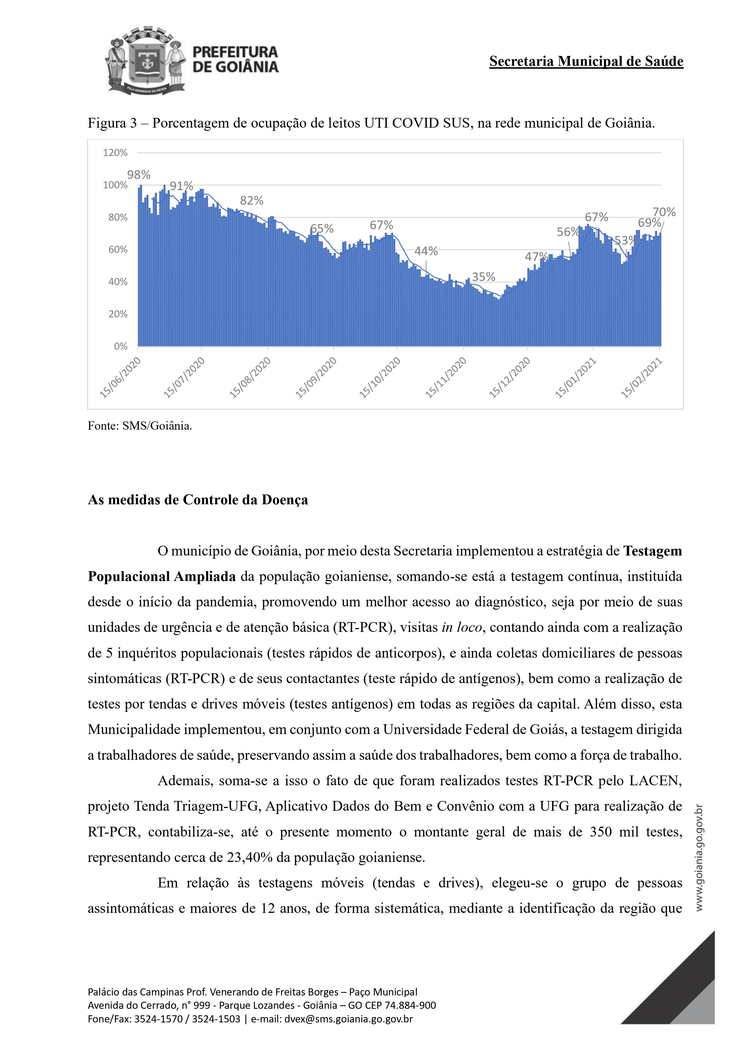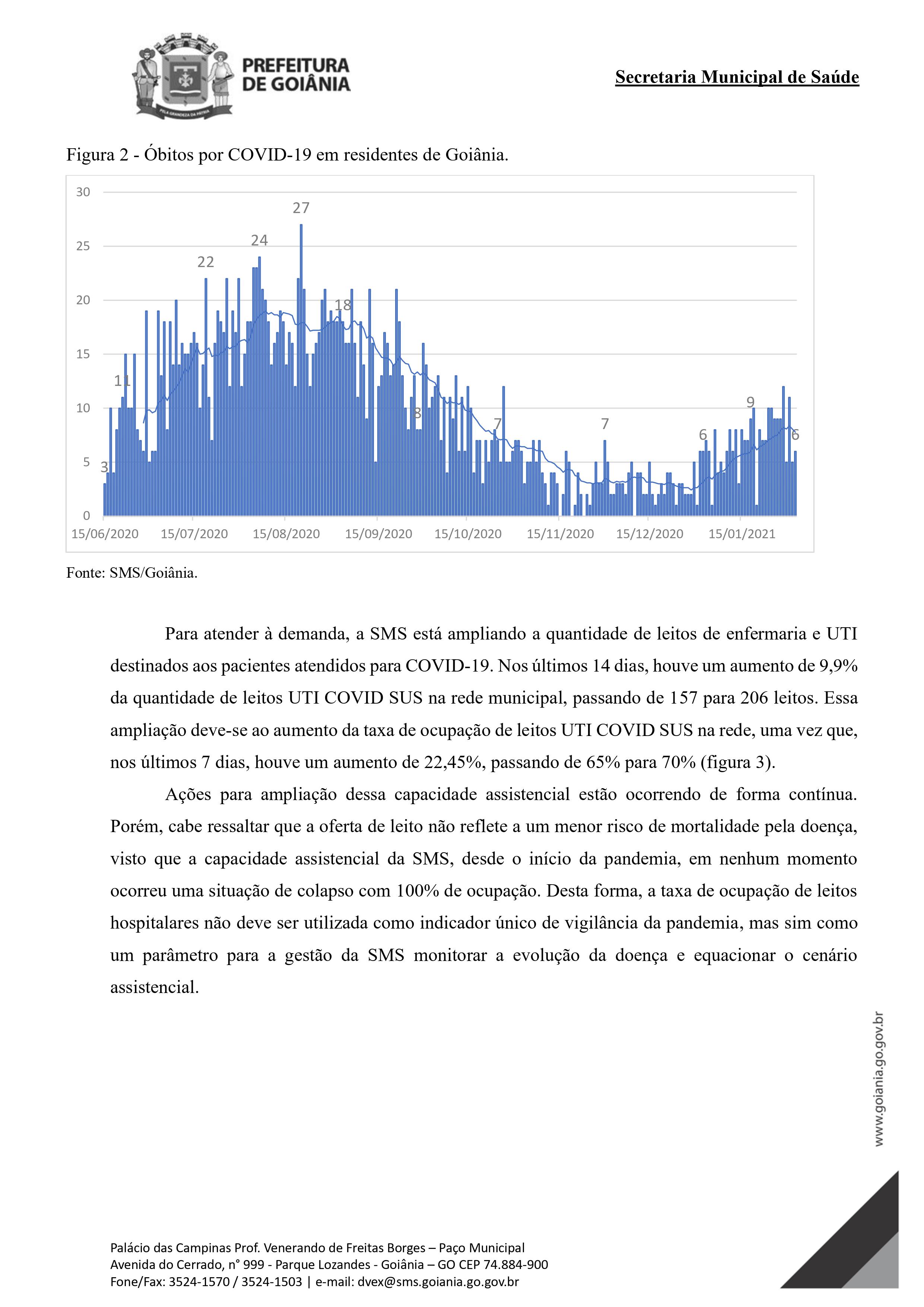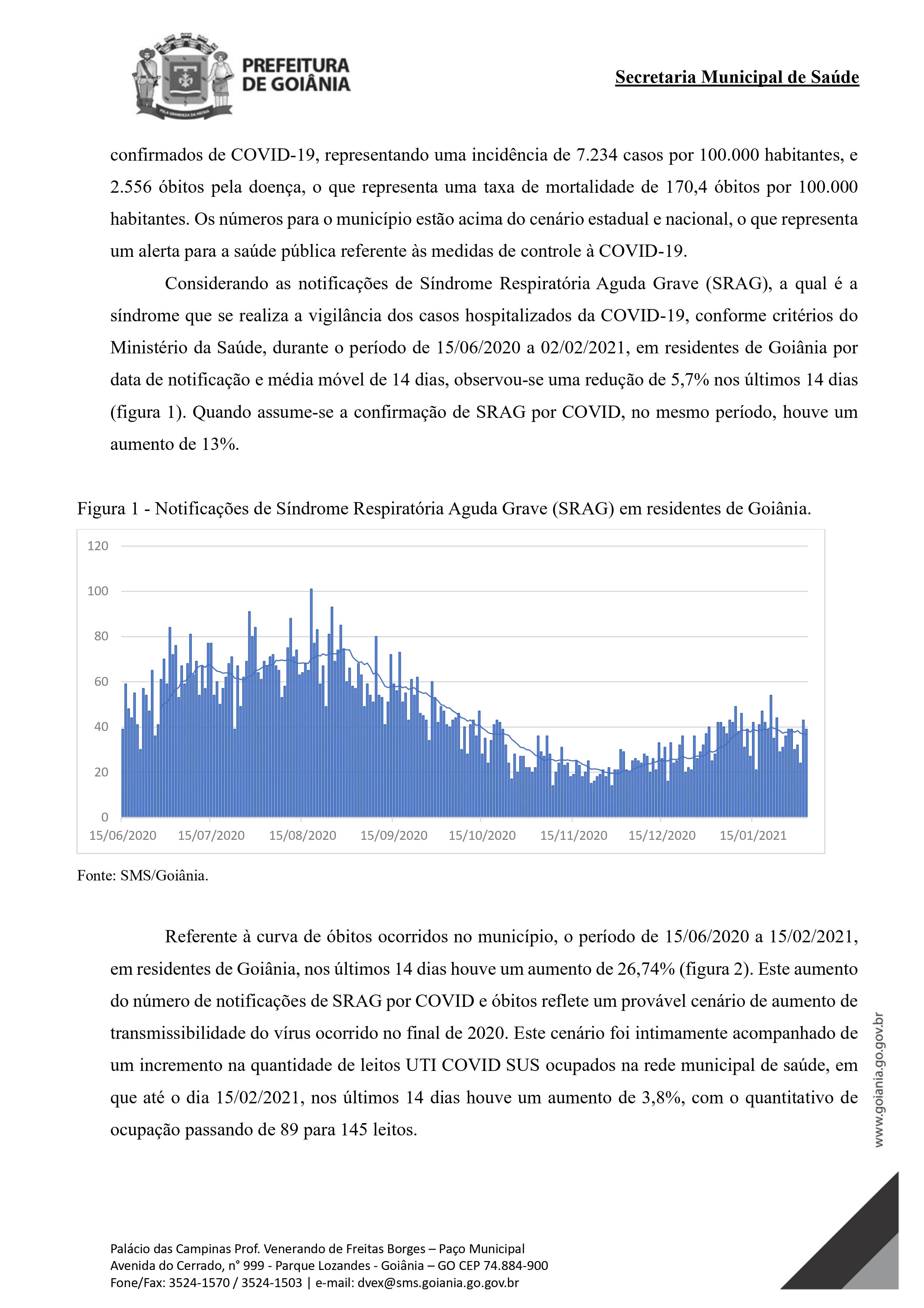- o aumento sustentado do número de casos e óbitos confirmados, de solicitações de internação ao Complexo Regulador Estadual (CRE) e das taxas de ocupação de leitos hospitalares, conforme Boletim Epidemiológico Coronavírus (COVID-19) nº 45 de 12/02/2021, implicando em risco de colapso do sistema de saúde;