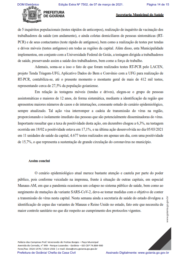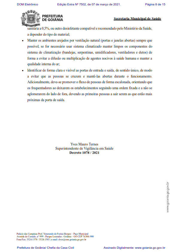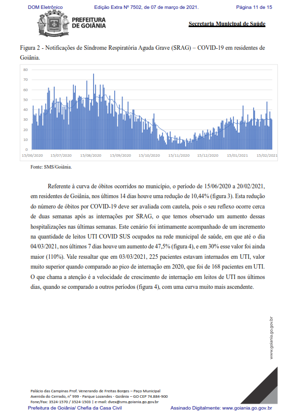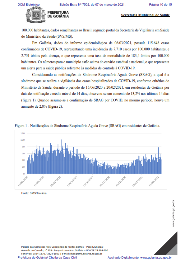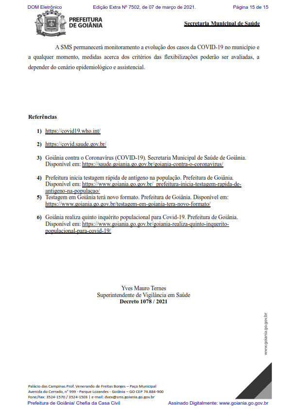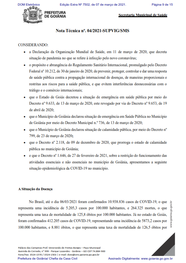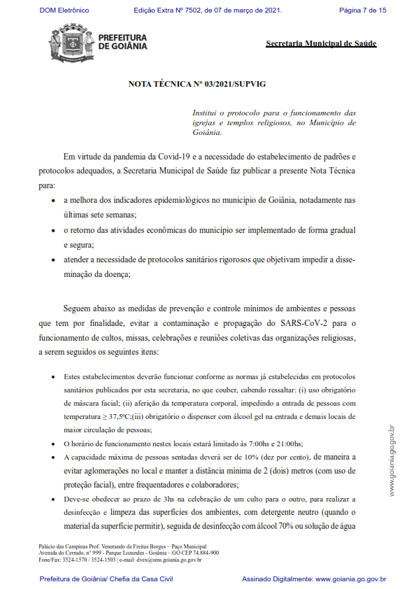 GABINETE DO PREFEITO DE GOIÂNIA, aos 07 dias do mês de março de 2021.