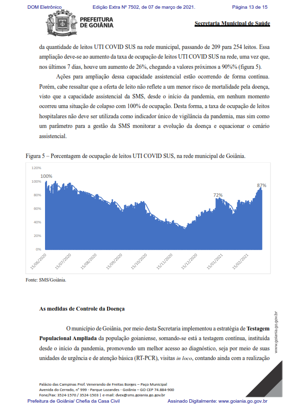 - o aumento sustentado do número de casos e óbitos confirmados, de solicitações de internação e das taxas de ocupação de leitos hospitalares, conforme Informe Epidemiológico COVID-19 (Edição Nº 337, atualizado em: 05/03/2021);