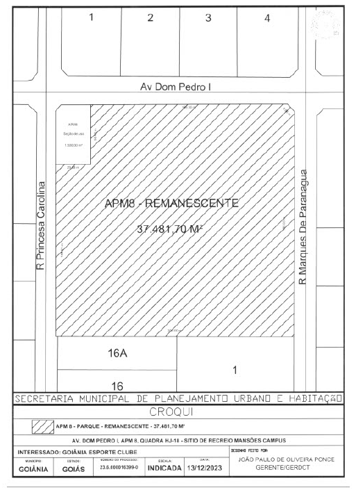 Desafeta Área Pública Municipal - APM e autoriza a sua cessão, por meio de permissão de uso, ao Goiânia Esporte Clube, no âmbito do Município de Goiânia. |
