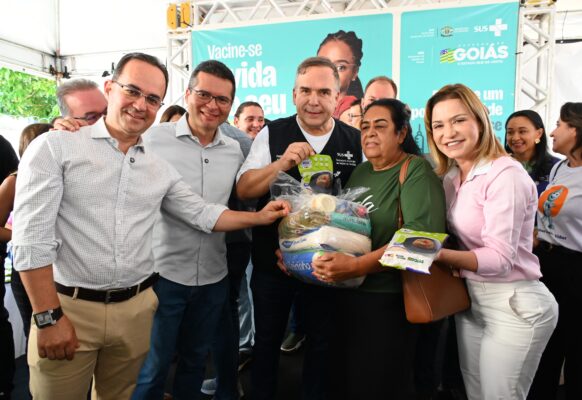 Prefeito Sandro Mabel recebe mais de 4 toneladas de vestuário e 30 celulares da Receita Federal para reforçar a assistência social em Goiânia