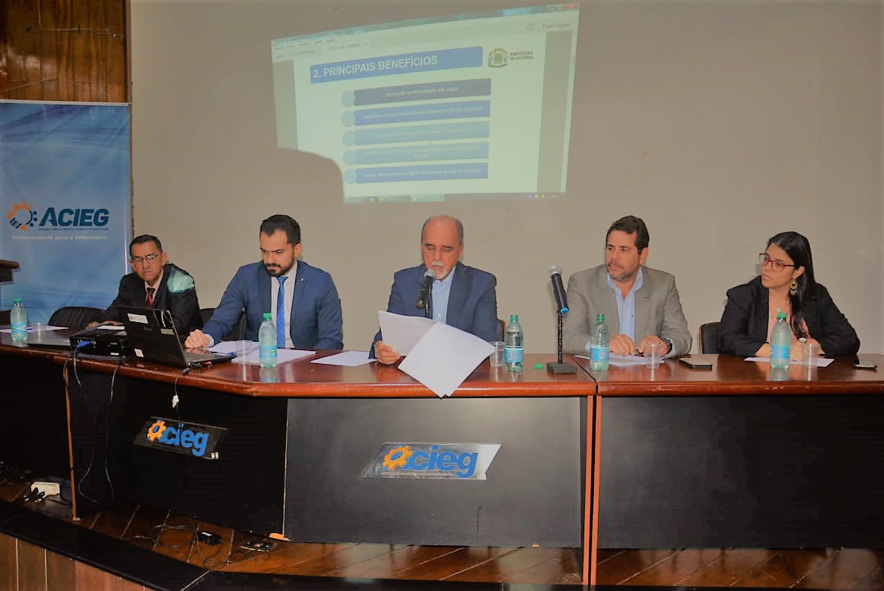 Participaram da mesa diretiva, o secretário Fernando Santana (SMT); Luiz Antonio Ribeiro, do Conselho de Desenvolvimento Econômico, Sustentável e Estratégico de Goiânia – Codese; Zenildo Dias do Vale, vice-presidente da Fecomércio e presidente do Sindicato das Revendedoras de Gás do Centro-Oeste; Georgia Borba, da Acieg; o chefe da advogacia Setorial da SMT, Neylismar Luiz Francisco Neto; e o vereador Anselmo Pereira.